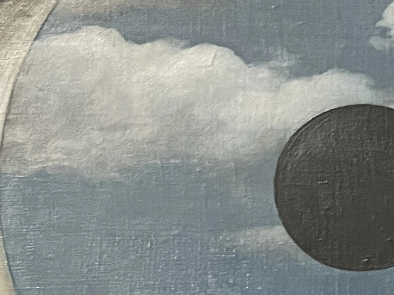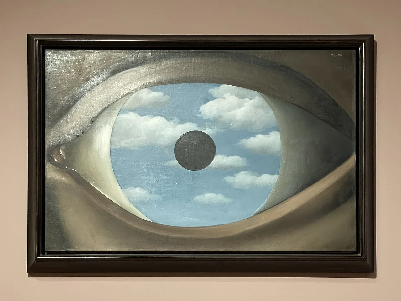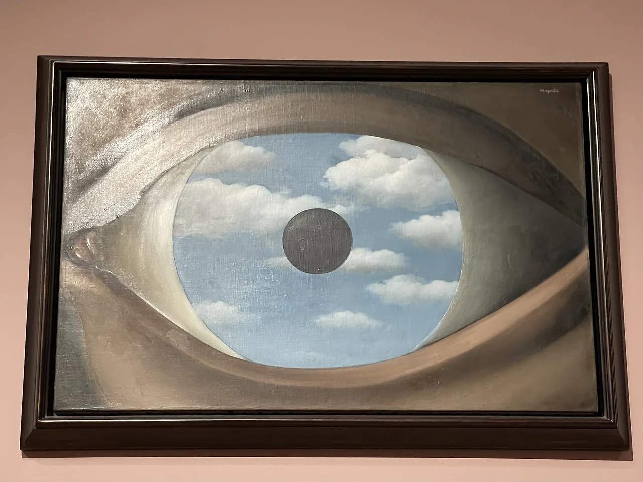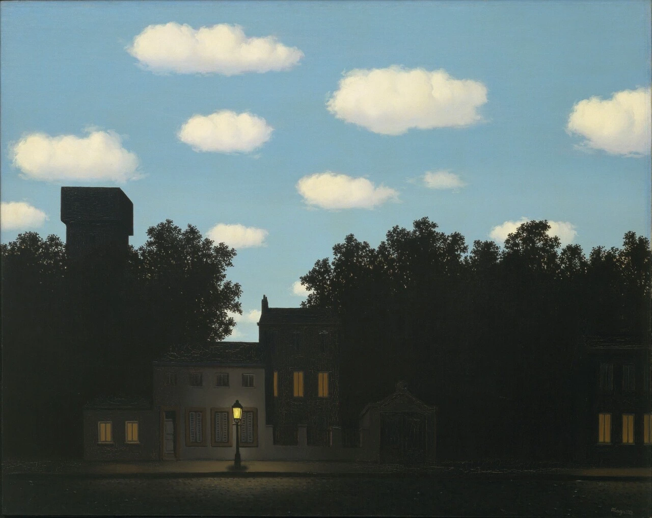 하늘은 너무나 파란, 뭉게구름이 펼쳐져 있는 맑은 낮인데, 아래 마을의 건물은 가로등이 켜져 있고, 건물에는 불이 밝혀져 있는 칠흑 같은 밤이다. 낮과 밤의 공존, 아- 이게 초현실이구나 싶다. 낮과 밤이 이렇게 공존하는 세계가 있다면? 뭔가 무섭기도 하고, 신기하기도 하고 낯설기도 하다. 이러한 익숙한 일상을 낯설게 만드는 화가, 르네 마그리트이다. 이젠 좀 감이 온다.
