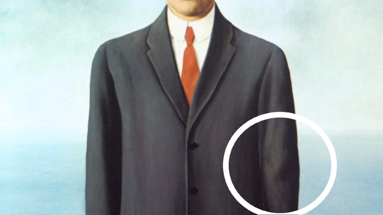 그런데, 왜 유명한 거지? 정말 유명한 작품으로 이게 딱! 르네 마그리트이다, 라고 할 수 있는 작품이다. 마그리트의 자화상이라 할 수 있는 ‘인간의 아들’, 작품명이 ‘인간의 아들? 예수님?’ 혹은 우리로 해석되기도 한다. 얼굴을 사과가 가리고 있는 단순한 모습이다. 얼굴 앞에 사과가 놓여있어서 얼굴이 잘 보이지 않는다. 하지만, 그 뒤로 눈이 살짝 보인다. 마그리트 자신의 모습으로 생각할 수 있을 만큼의 눈이다. 확실하진 않다.