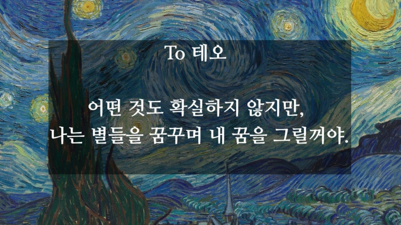 여러 가지 흥미로운 얘기들이 많지만, 동생 테오 Theo에게 썼던 반 고흐의 편지에서 고흐가 진정으로 생각했던 의미를 좀 더 자세히 알 수 있지 않을까 생각한다.