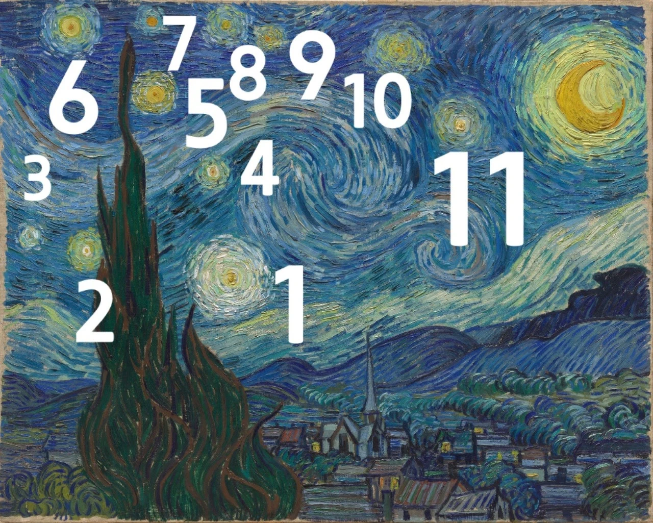 ‘ 안녕하세요, 저는 목사입니다. 반 고흐 아버지의 직업이 목사여서 반 고흐 또한 목사가 되고 싶어 했는데, 뜻하지 않게 전도사에서 파면되어 목사의 꿈을 이루지 못했답니다. 그래서 반 고흐 자신이 성경에 대해 많이 알고 있어서, 그 성경의 메시지를 밤하늘에 표현한 게 아닐까요? 별을 세어보니 11개의 별이 보입니다. 성경에 등장하는 열한 개의 별은, 창세기에 나오는 이야기 중에, 11명의 형제들이 무릎을 꿇고 요셉 Joseph에게 절을 하는 꿈을 꾸었다고 말하는 요셉의 꿈 얘기가 나오는데, 이 꿈 얘기 때문에 요셉이 엄청나게 힘든 탄압과 추방까지 당하게 됩니다. 이후 흉년이 들어 실제로 11명의 형제들이 요셉에게 찾아와 무릎을 꿇고 도움을 요청하며 화해하게 되는데, 이 성경의 이야기를 11개의 별로 표현한 게 아닐까요? 반 고흐는 지금 자신의 힘든 시기가, 요셉의 힘든 시기라 생각하고, 밤하늘에 그 성경의 의미를 표현하게 아닐까 생각합니다.’