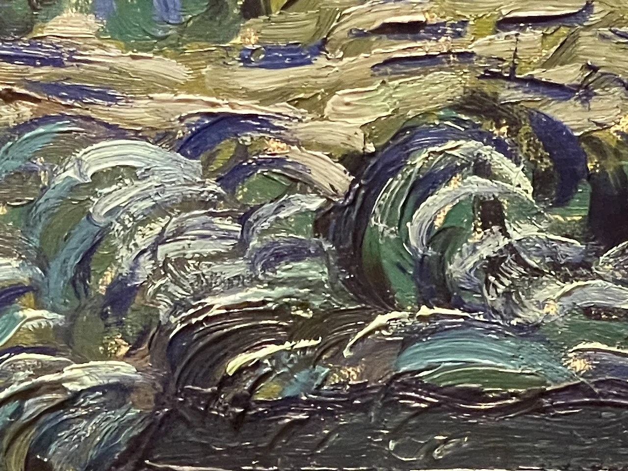 우리가 보통 반 고흐 그림을 보면 ‘살아있네-’라고 말하는 이유 중의 하나가 반 고흐의 강렬한 붓 터치 기법 때문이다. 지금 막 그림을 그리고 툭- 붓을 놓고 나간 듯한 이 느낌, 몇 백 년이 지난 지금도 어떻게 그림을 그렸는지 알 수 있을 것처럼 느끼게 하는 붓 터치, 어느 방향으로 어떻게 붓질이 갔는지 우리가 느낄 수 있게 만드는 이 기법, 바로 반 고흐의 임파스토 Impasto 기법이다. 이탈리아어로 ‘반죽하다’라는 의미의 임파스토 기법은, 물감을 반죽하듯이 사용한다 하여 붙여진 이름이다. 반 고흐도 이 기법을 같은 네덜란드 화가인 렘브란트 Rembrandt의 그림을 보고 배우게 되는데, 렘브란트 의 임파스토 기법보다 우리의 감성을 더 풍부하게 표현하게 위해 더 적극적이고 오버스럽게 임파스토 기법을 사용하게 된다. 이 임파스토 기법은 유화 물감을 앞으로 튀어나오게 3D 느낌으로까지 만들어, 실제로 작품을 봤을 때 작품 주위의 조명이 물감에 비추어 입체적인 느낌으로 다가와, 우리를 더욱더 놀라움을 금치 못하게 만든다. 그냥 아- 라는 감탄사가 나도 모르게 입가에서 새어 나온다.