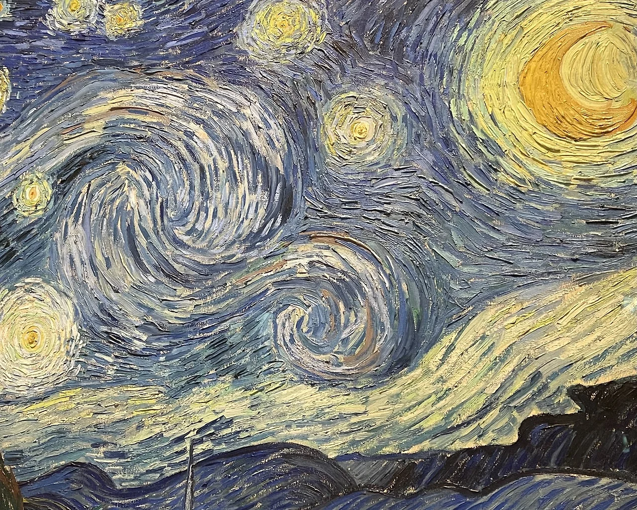 그 다음으로 그린, 모마의 '별이 빛나는 밤' 의 밤하늘에서 반 고흐의 별은 최고의 화려함으로 빛을 발하게 된다. 이러한 여러 작품 속에서 하나 둘 밤하늘의 별들을 그리며, 반 고흐만의 별들의 모습을 만들어 낸다.