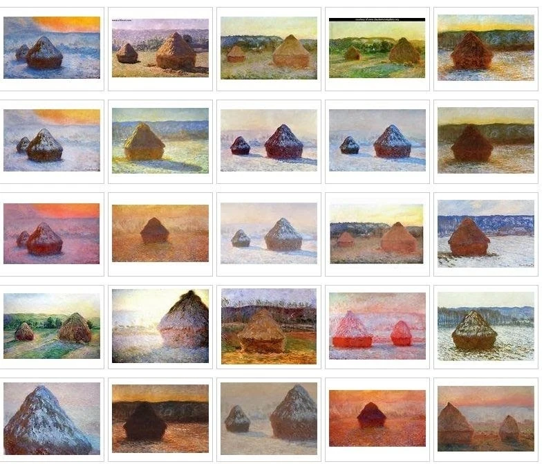 몰입도가 어마어마한 모네이다. 하나의 주제로 다양한 모습의 시리즈 작품을 많이 그려낸다. 우리가 흔하게 시골 농촌에서 볼 수 있는 건초더미를 어쩜 이렇게 다양한 모습으로 그려낼 수 있을까?