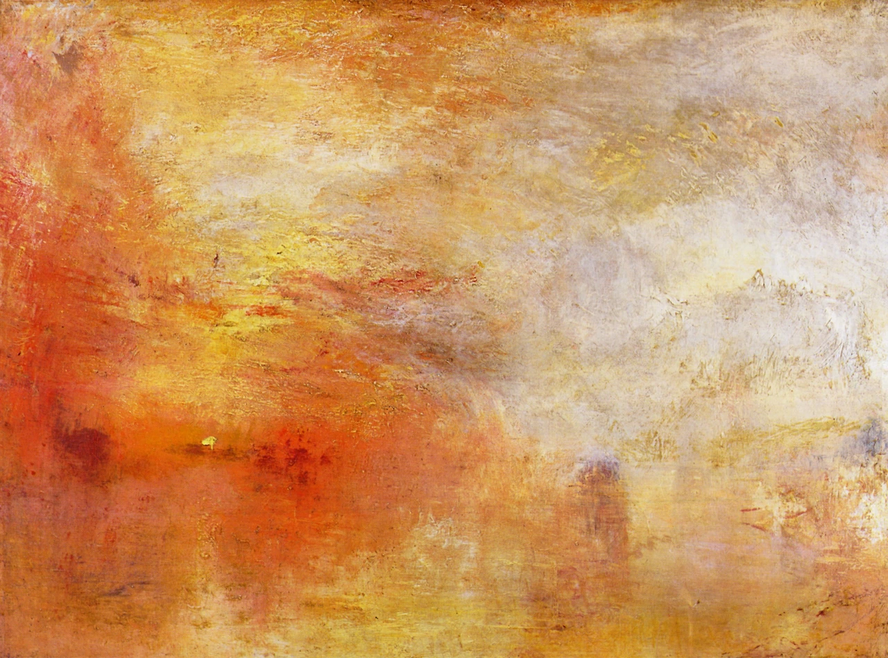 아, 터너의 이 작품, ‘Sun Setting Over a Lake 호수 위로 넘어가는 해’ 를 보고 있으면 모네의 ‘Sunrise 해돋이’ 작품이 오버랩되어 보인다. 모네가 터너에게 얼마나 영향을 받았는지 한눈에 알 수 있는 터너의 작품이다.