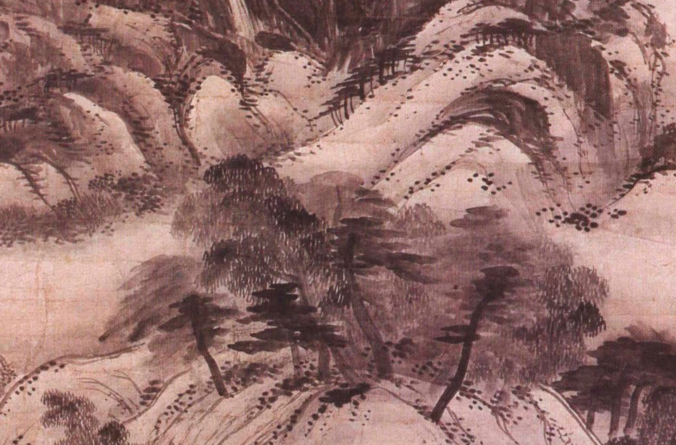 디테일한 나무의 표현이 놀랍다. 비 온 뒤 물기를 머금고 있는 모습을 작은 점들의 모습으로 표현하였다. 물을 많이 넣어 농도가 낮은 옅은 먹을 붓으로 여러 번 찍어 덧칠해 나타내, 비가 온 뒤의 물 먹은 소나무의 표현이며, 축축~ 늘어진 버드나무의 표현이며 다양한 나무들의 표현력이 대단하다. 디테일을 보는 재미가 엄청나다.