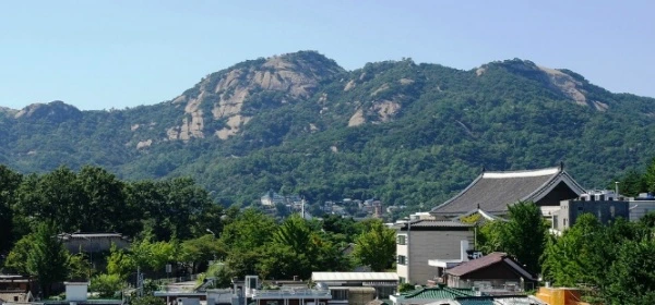 그런데 실제 인왕산의 모습보다 더 웅장하고 멋져 보이지 않는가? 그 이유를 다시점으로 그렸기 때문으로 보는 이도 있다. 인왕산은 멀리 아래에서 위로 올려다보는 시점으로, 아래에 집이 있는 곳은 지붕이 저렇게 많이 보이는 것으로 보아 위에서 아래로 내려다보는 시점으로 , 즉 다시점으로 그려 더 웅장하고 가까운 느낌을 준다고 해석하기도 한다. 그림에서 보이는 실제는 아래와 같다.