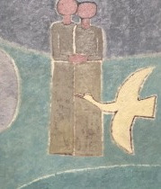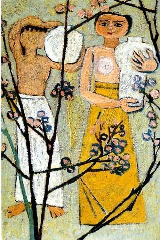 김환기의 첫 작품, 종달새 노래할때,178×127cm, 1935년. 원작은 분실되었고, 도판만 존재.
