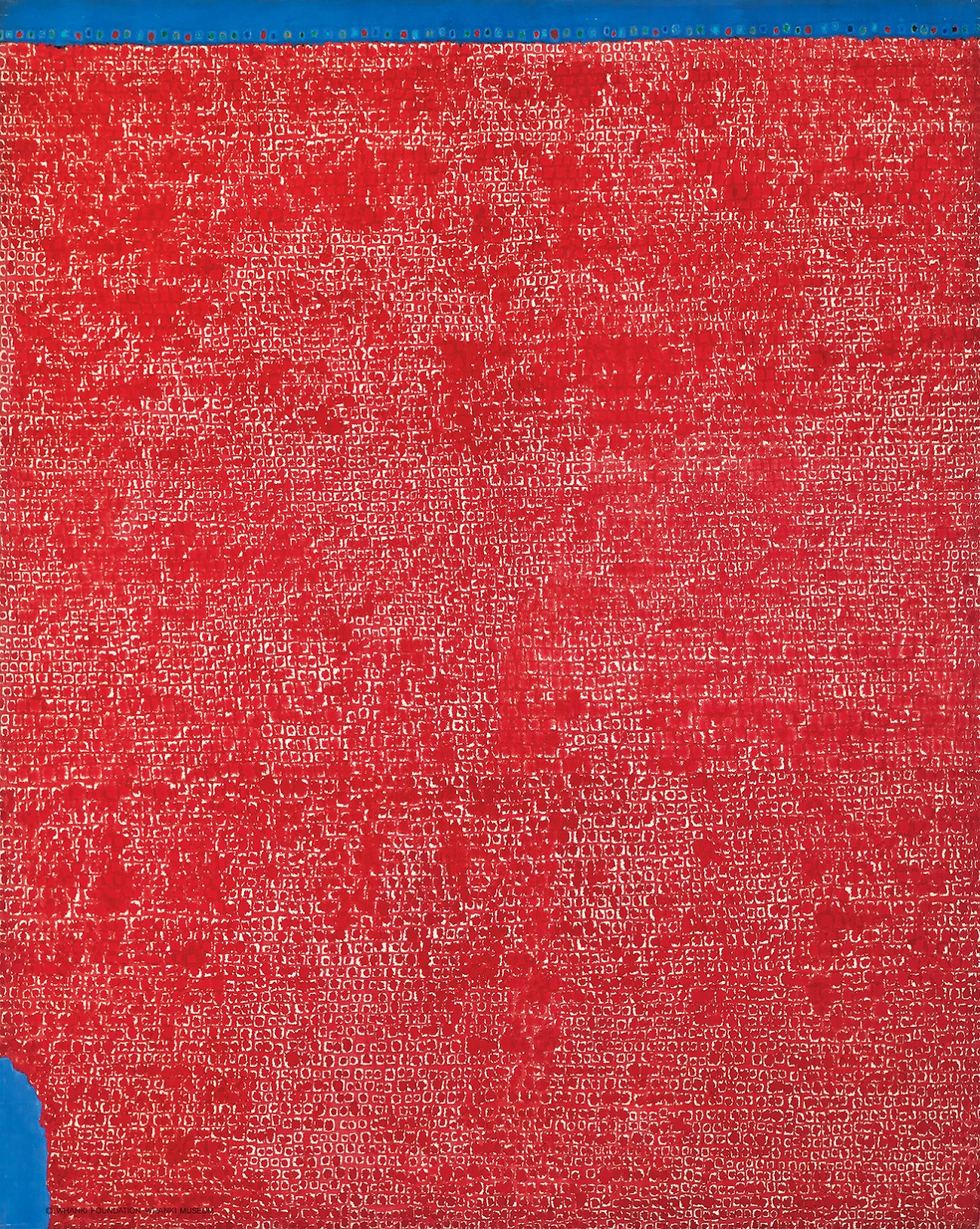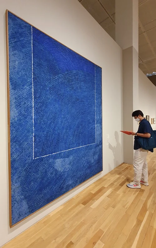 아, 한점 한 점이 그리움의 별이구나. 사이즈가 세로 2.3m, 가로 1.7m 의 대형 작품이다. 이렇게 큰 화폭을 하나하나 점을 찍으면서 그리움을 표현하였다고 하니, 정말 대단한 작업이다. 점 하나 찍고, 사각으로 그리고, 점 하나 찍고, 사각 치고, 점 하나 찍고 사각으로 두르고… 저 수많은 별, 저 수많은 사람이 나를 쳐다본다. 저 안에 나는 어디 있고, 너는 어디 있는가. 별로, 사람으로, 우리는 어디에서 무엇으로 다시 만날까. 그림이 시구나.