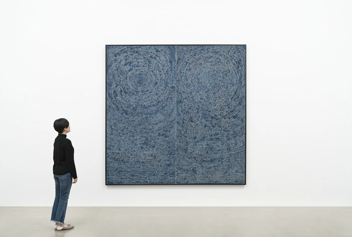 두 개의 원이 우리를 우주 안으로 빠져들게 만든다. 2 패널로 구성되어 있다. 두 원이 우리를 빨아 드린다. 두 원은 무엇일까? 혹자는 우주의 근원인 음과 양이라 해석하기도 하고, 남과 여, 너와 나, 김환기와 김향안 등 다양하게 해석한다. 놀라운 건, 가만히 보고 있으면 이 거대한 원이 하나는 빨려 들어가는 느낌이고, 하나는 빨려 나오는 느낌이다. 매혹적이다. 무엇보다도 크기 앞에 압도당한다. 저 넓은 화폭에 저 많은 점들을 어떻게 찍어낸 걸까? 얼마나 인내해야 하는 걸까? 어느 정도의 시간이 지나면, 점과 내가 하나가 되는 아무것도 없는 적막한 우주에 덩그러니 나 혼자 있는 무아지경의 순간이 오는 걸까? 감히 따라 해 볼 엄두도 내기가 쉽지 않다.