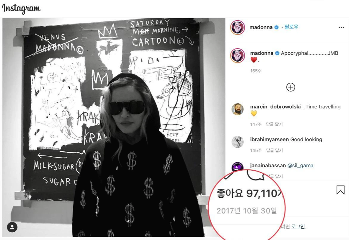 2017년 10월 30일, 가수 마돈나 Madonna의 인스타그램에 미술 작품 앞에서 찰칵! 찍은 사진이 하나 올라온다. 뒤에 있는 작품의 화가는 바스키아, 한 때 서로 무명일때 잠깐 사귀었던 마돈나의 엑스-보이프렌드 Ex-boyfriend 이다. 그 때 당시에도 끊지 못했던 헤로인 중독 때문에 마돈나가 헤어지자고 했다고 하는데, 전 남자친구였던 바스키아가 죽고난 뒤 찾았던 전시회에서 이 작품을 만난 마돈나의 마음은 어땠을까??!!....