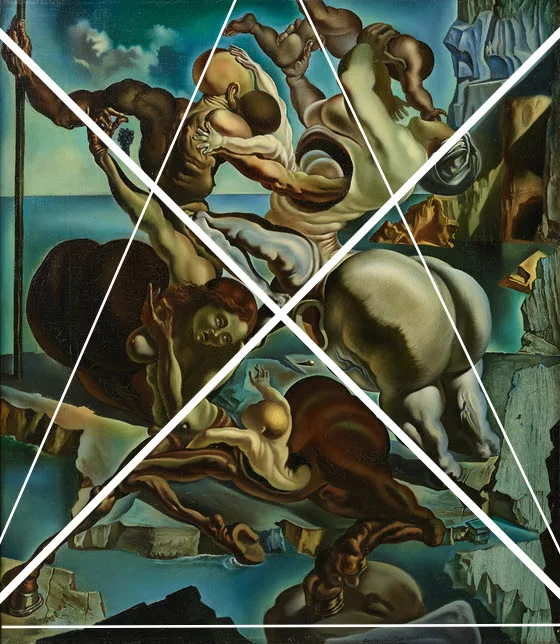 대단히 안정적인 구도의 그림이다. 대각선 삼각형의 균형과 내부의 삼각형 배치가 어찌 보면 르네상스의 아이콘인 안정적인 삼각 구도보다 더 안정적인 느낌이다. 이 작품이 초현실적인 작품임에도 불구하고, 클래식한 미술의 구도를 따랐다고 하는 이유이다. 어디로 튈지 모르는 달리의 성격을 유감없이 보여주는 작품이다. 단지 우리의 생각, 사상만으로 존재하는 이야기를 이렇게 시각적으로 표현할 수 있는 달리의 능력이 너무나 부럽다.