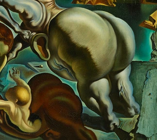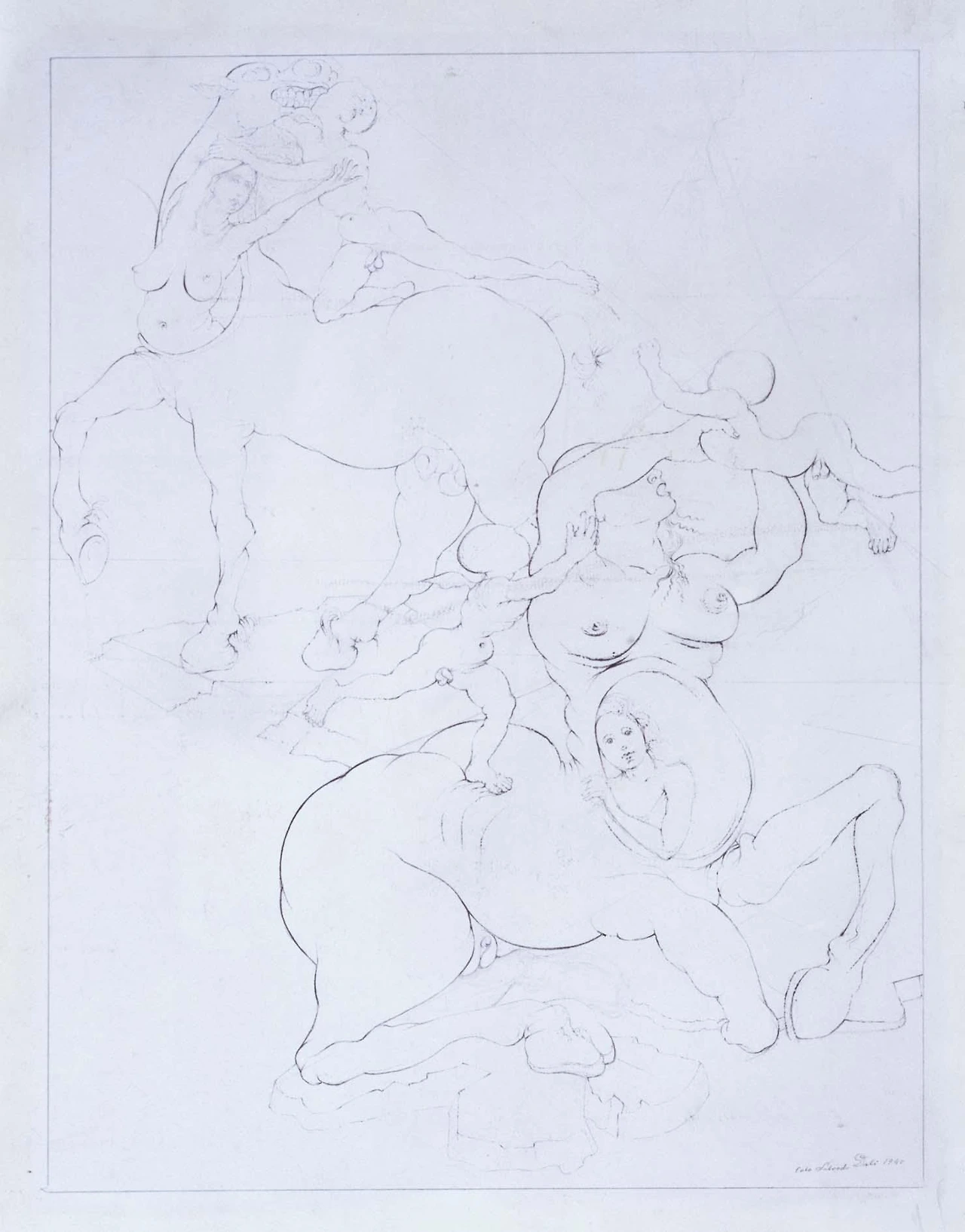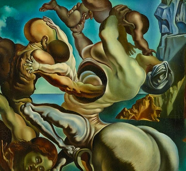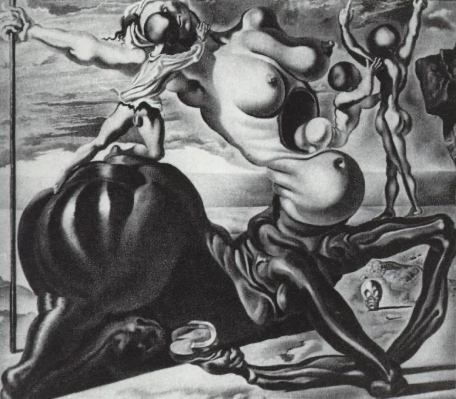 아, 왜 달리가 이러한 켄타우로스 작품을 그렸는지 이제 알겠다.그가 미국에 살고 있던 시기이지만 배경은 그의 작품에 많이 등장하는 고향인 스페인의 카탈루이나 해변가로 보이고, 상반신은 사람이고 하반신은 말인 엄마 켄타우로스의 복부에서 아빠 켄타우로스가 손을 힘차게 넣고 아이를 꺼내는 모습이 대단히 역동적이다. 힘찬 말의 다리 근육들이 어마어마하다.