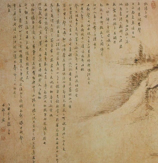 일단 천 년 전 생각이나 지금의 생각이 별반 다르지 않고 공감할 수 있다는 게 놀랍고, 한편의 시이니 만큼 한 번 분위기에 따라가며 감상에 빠져보는 것도 좋겠다. 김홍도가 적어놓은 구양수의 추성부 전문을 쉽게 풀어 보았으니, 조금은 길어 보이더라도 재미있는 산문처럼 쓴 이야기 글로 차분히 머릿속에 스토리에 따라 상상해 가며 한 번 보길 권한다.