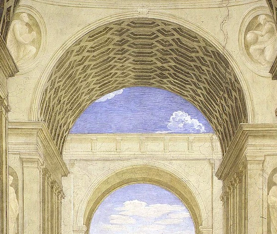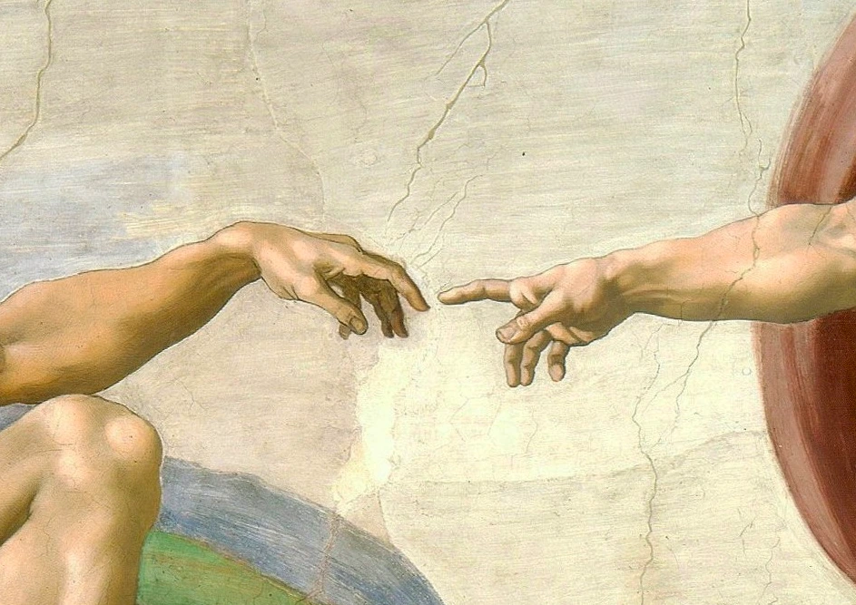 손 모양을 자세히 보니, 르네상스의 또 다른 거장인 미켈란젤로의 ‘천지창조’에서 본 듯한 손 모양을 하고 있다. 닿을 듯 말 듯한 두 사람의 손 모양을 소크라테스의 한 동작에 담아내었다. 이 정도면 그가 얼마나 클래식 한 그림, 르네상스의 거장들 그림에 진심이었는지 충분히 짐작이 가고도 남을 듯하다. 자신의 존경과 마음을 소크라테스 한 사람에게 모두 담아낸 듯하다.