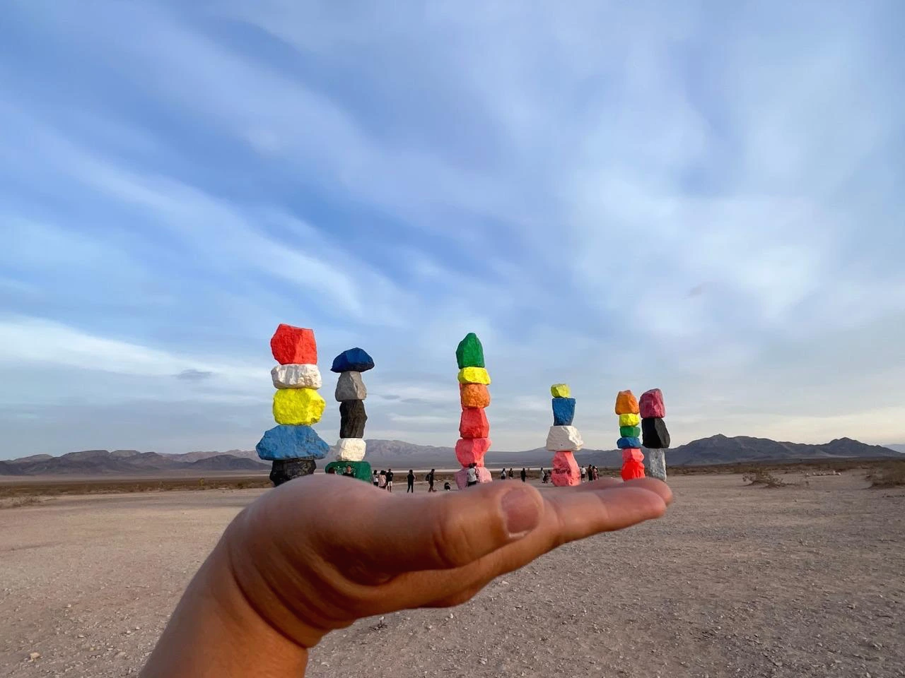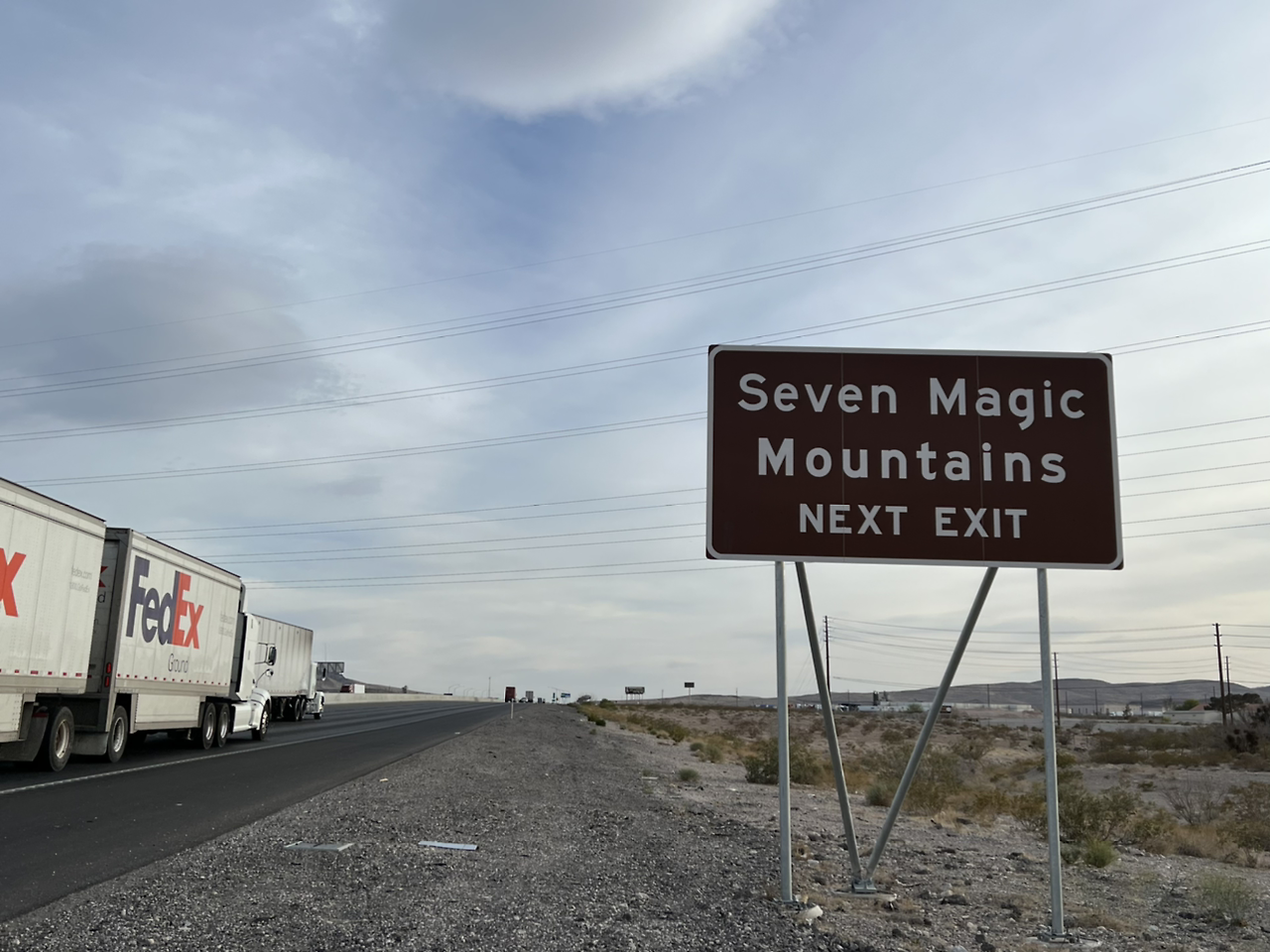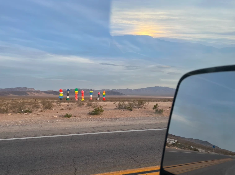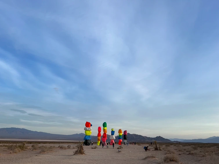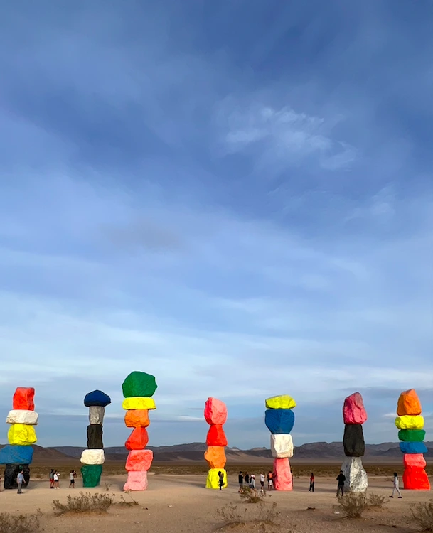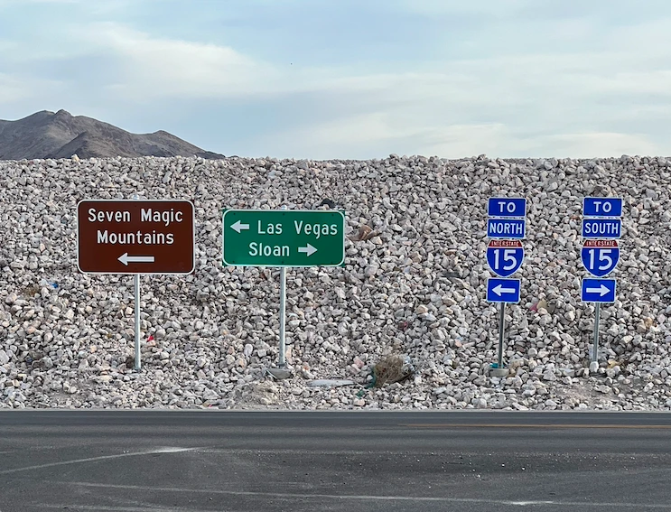 라스베가스에서 로스앤젤레스로 가는 15번 도로를 타고 약 20분쯤 내려왔을 즈음에 왼쪽 저 멀리 뻥 뚫려 있는 광활한 사막에 아주 조금씩 이상한 형형색색의 색 덩어리가 눈에 들어온다. ‘저게 뭐지?’ 싶을 정도로 눈길을 확 끈다. 급하게 차를 돌려 프리웨이를 나갔더니 표지판 하나가 눈에 들어온다. 세븐 매직 마운틴스….