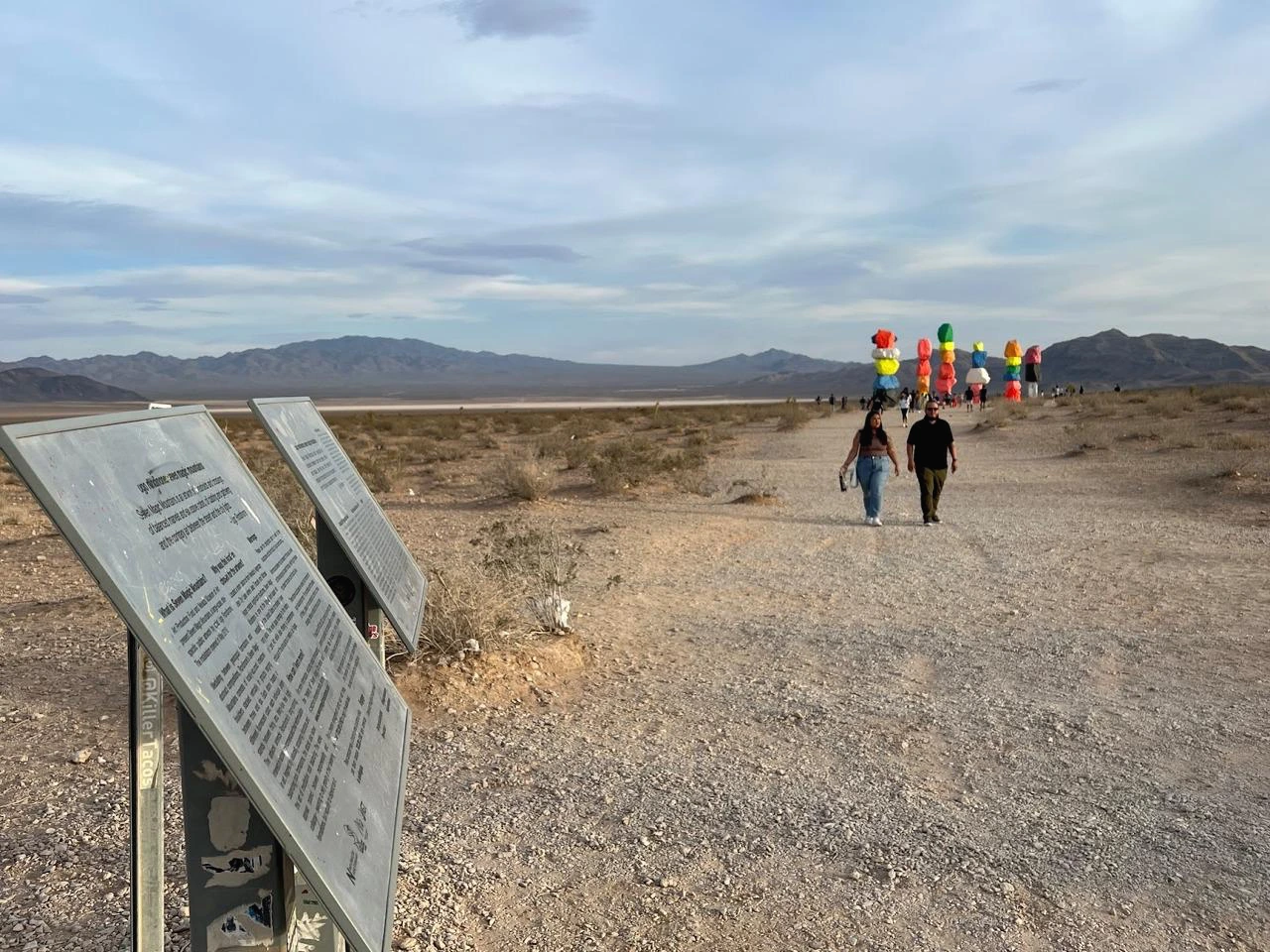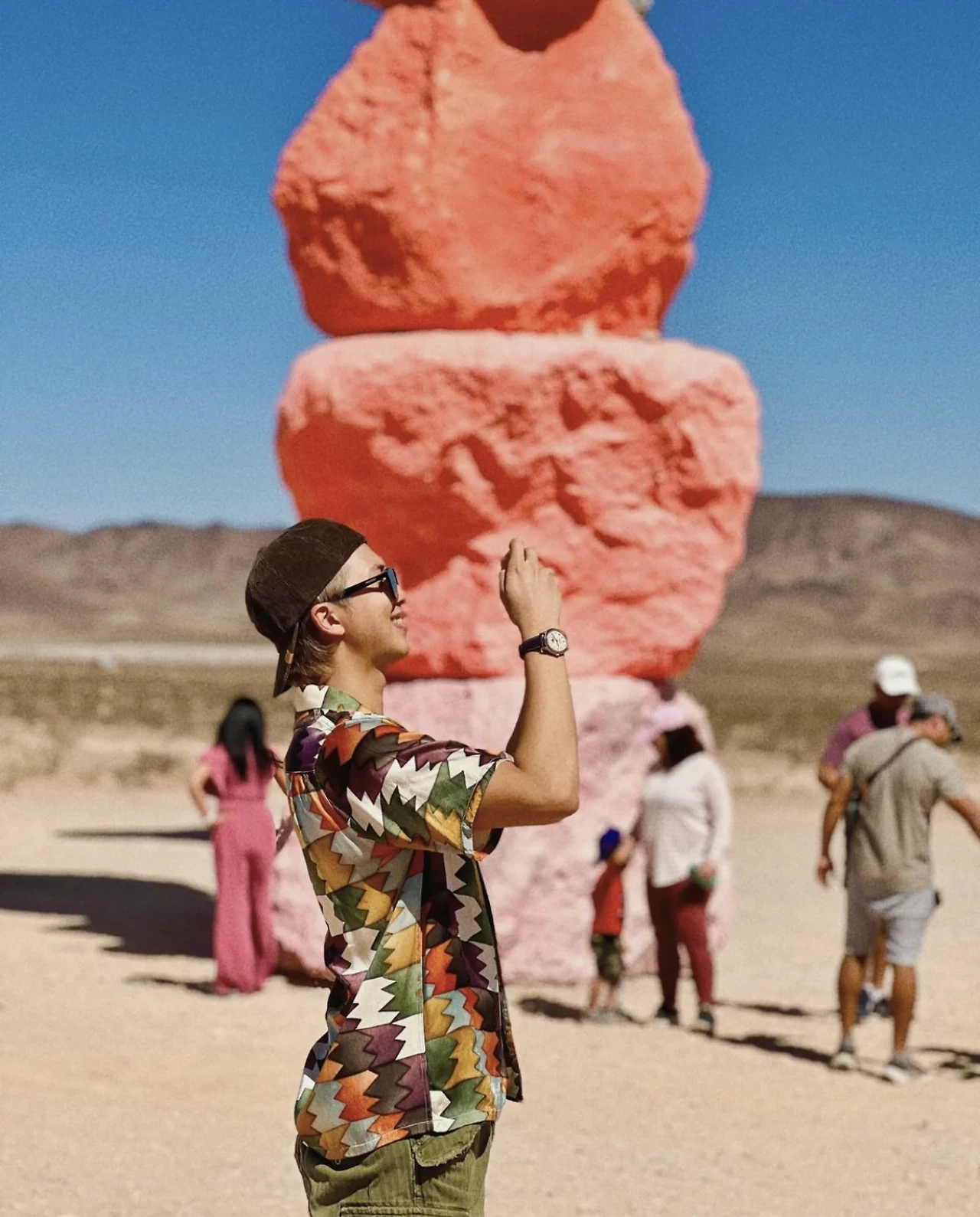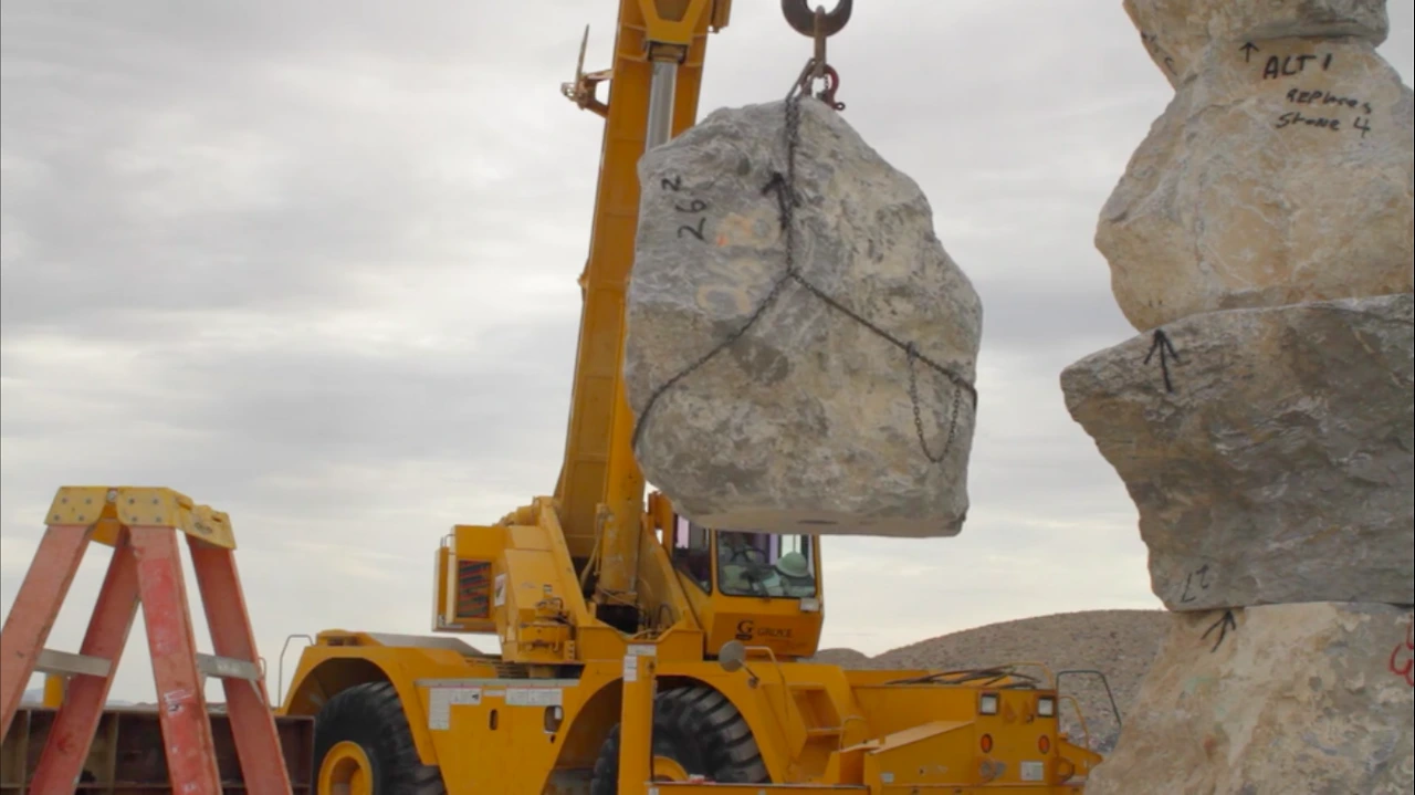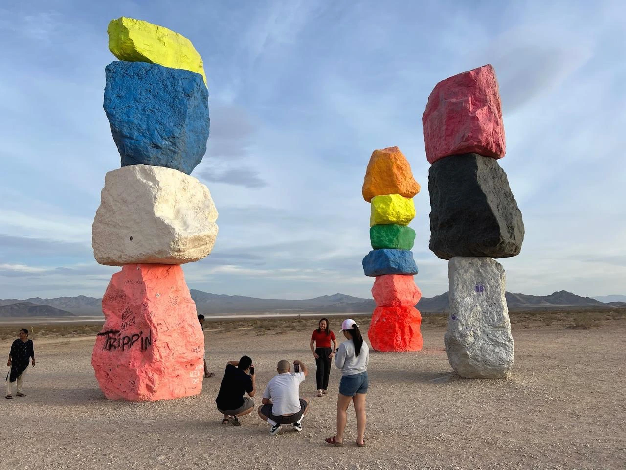 그런데, 이 큰 바위들을 다 어떻게 옮겨온 걸까? 네바다 현지에서 채굴한 바위라 옮겨온 건 크레인으로 들어서 옮겨온 거라고 이해하겠지만, 저게 어떻게 안 넘어지고 저렇게 서 있지? 여기 지역이 바람도 많이 불고 위험한 사막 지역이라고 하던데, 어느 날 와 있는데 넘어져 있는 거 아냐? 사람들이 이렇게 많은데 떨어져서 사고라도 난다면?