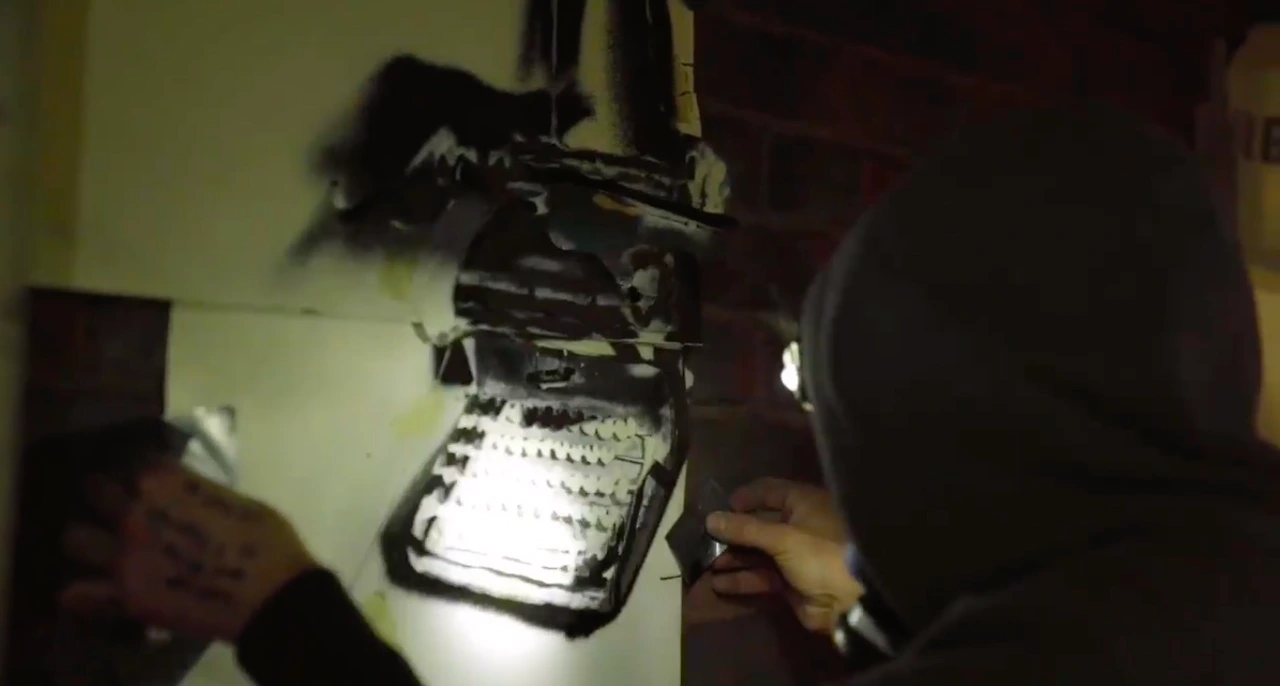 2021년 2월 28일 밤 늦게 작업하여 3월 1일 아침에 세상에 알려진 그래피티로, 2014년 1월에 폐쇄하고 현재 문화, 예술의 공간으로 활용되고 있는 레딩 교도소 Reading Prison 담벼락에 타자기를 묶고 탈옥하는 죄수의 모습이다. 처음 그려졌을 때, 뱅크시가 그렸나 아닌가 추측이 무성했지만 몇 일 후인 3월 4일, 뱅크시의 인스타그램에 작업한 비디오가 올라오면서 공식적으로 그의 작업으로 밝혀졌다. 비디오는 우리에게 ‘그림 참 쉽죠~’ 로 너무나 많은 사랑을 받았던 밥 로스 Bob Ross 의 영상과 목소리로 함께 만들어, 우리의 어린 시절 너무나 행복했던 추억의 ‘예술 사랑’을 함께 소환해 준다. 그의 작업도, 작품도 이렇게 많은 사람들의 사랑을 받고 싶은 것 아닐까?