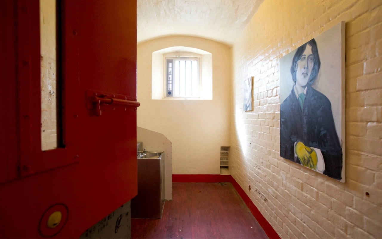 교도소에 있는 커튼 조각 조각을 묶어 줄을 만들어 내려오는 모습인데, 그 중요한 순간에 줄 끝에 매달려 함께 교도소 밖으로 나오고 있는 타자기! 탈옥수와 타자기는 왠지 어울리지 않을 것 같은데? 이 곳 레딩 교도소는 1895년-1897년에 아일랜드의 시인이자 소설가로 유명한 오스카 와일드 Oscar Wilde 가 수감되었던 곳으로 유명하다. 당시 동성애라는 죄목으로 감옥에 투옥된 와일드는 이 곳 감옥에서 수감하면서 접했던 죄수들의 이야기를 담은 시 ‘레딩 감옥의 발라드 The Ballad Of Reading Gaol’ 를 풀려난 뒤 발표하였다. 이 곳 교도소와 뗄레야 뗄 수 없는 오스카를 글 쓰는 타자기로 센스있게 표현하였다.
