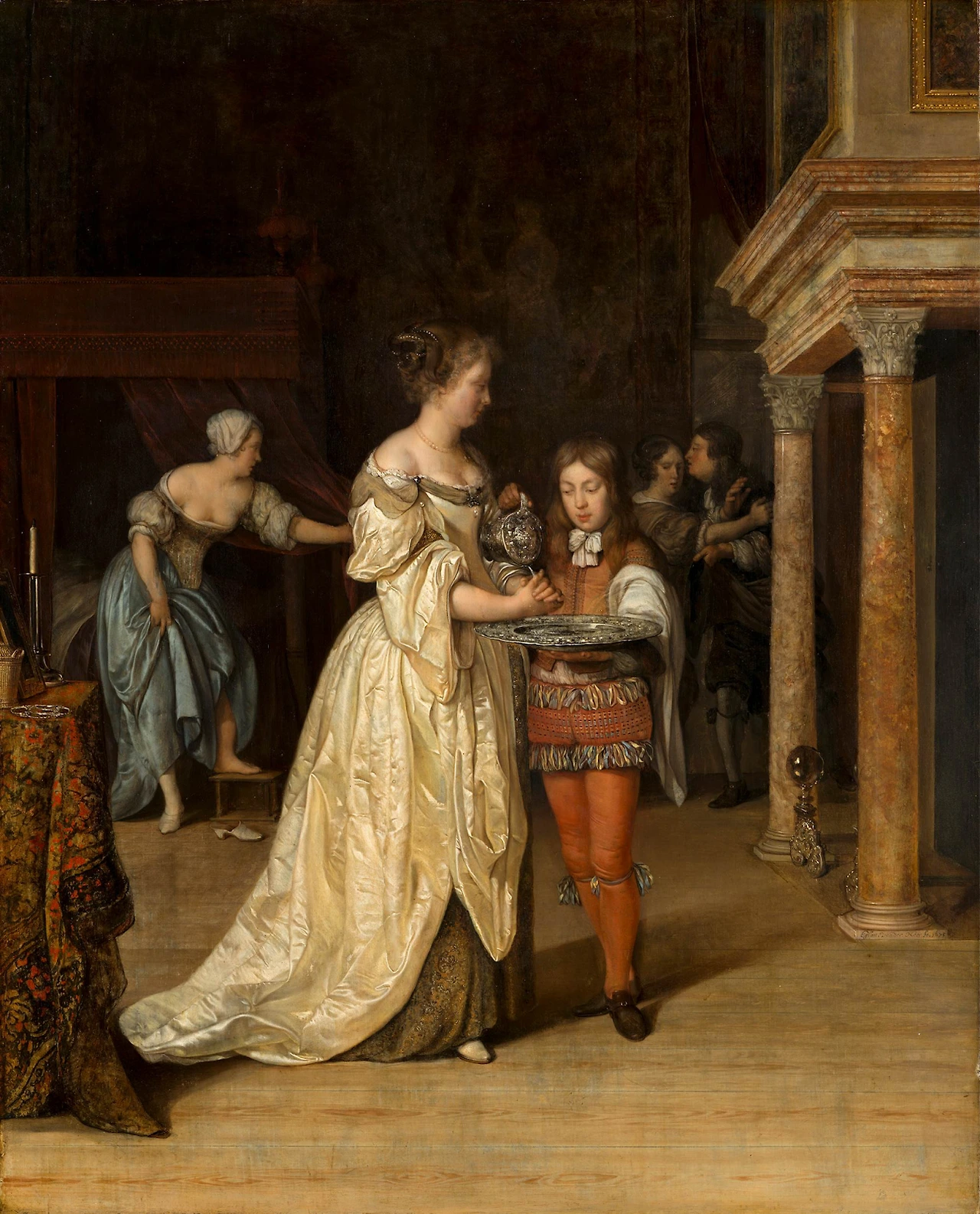 왼쪽: 손 씻는 여인 A Woman Washing Her Hands, 1655, Gerard ter Borch, Gemäldegalerie Alte Meister, Dresden, Germany