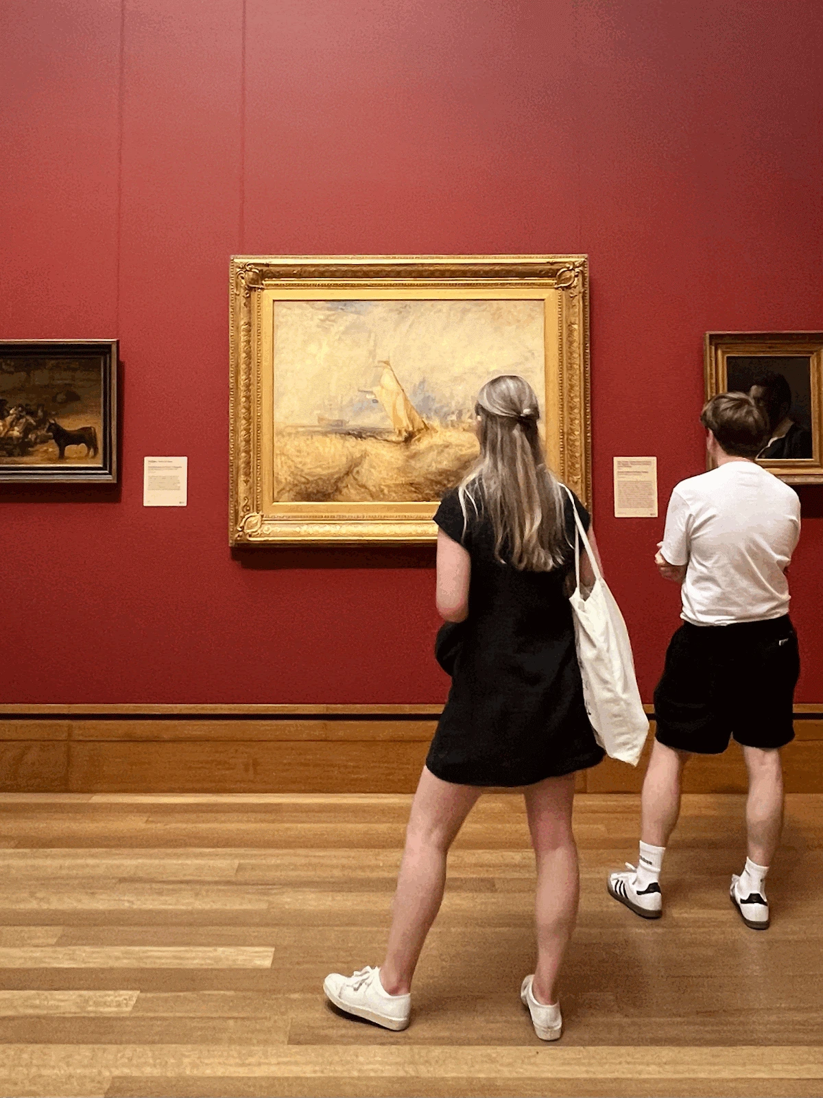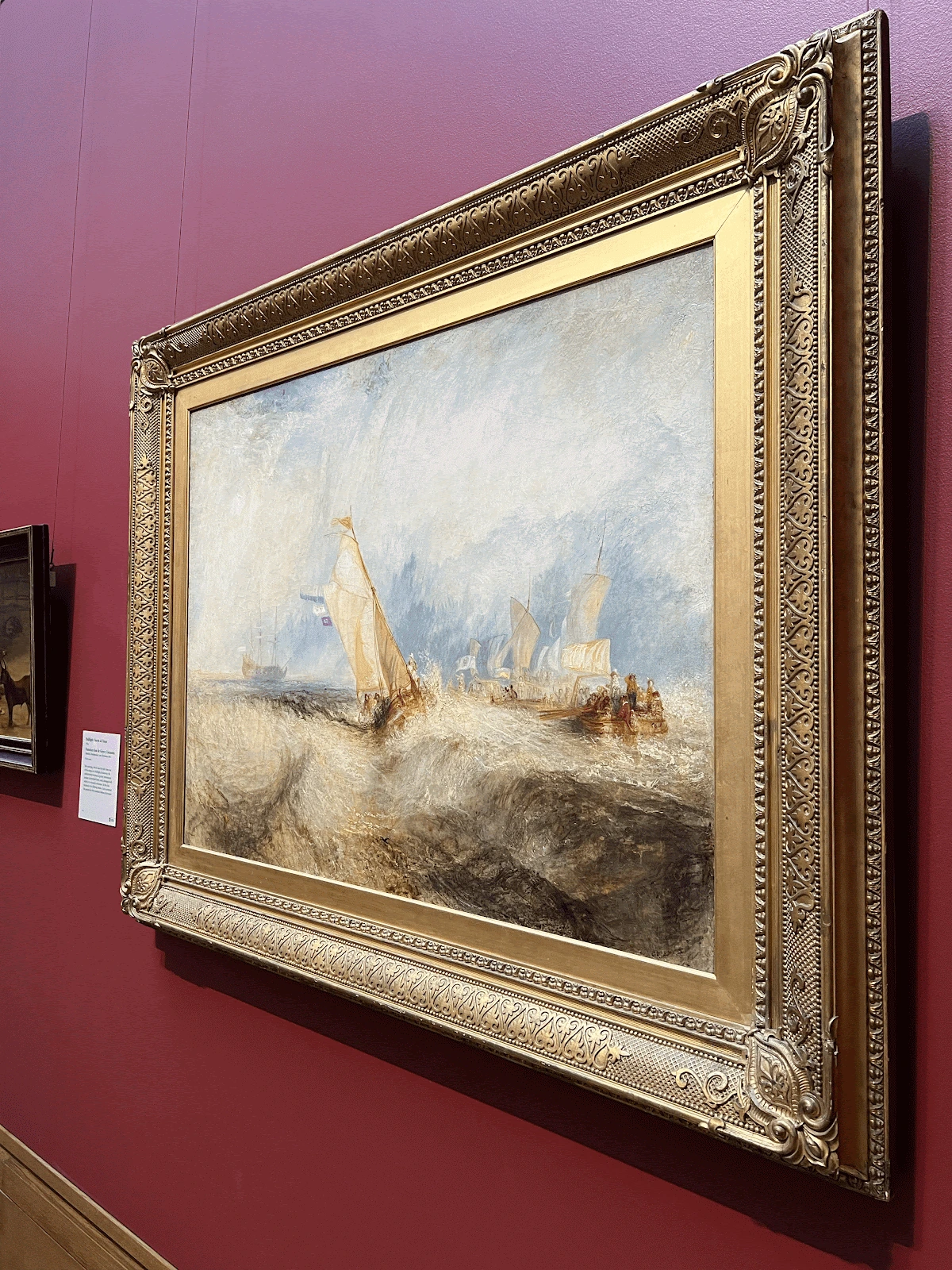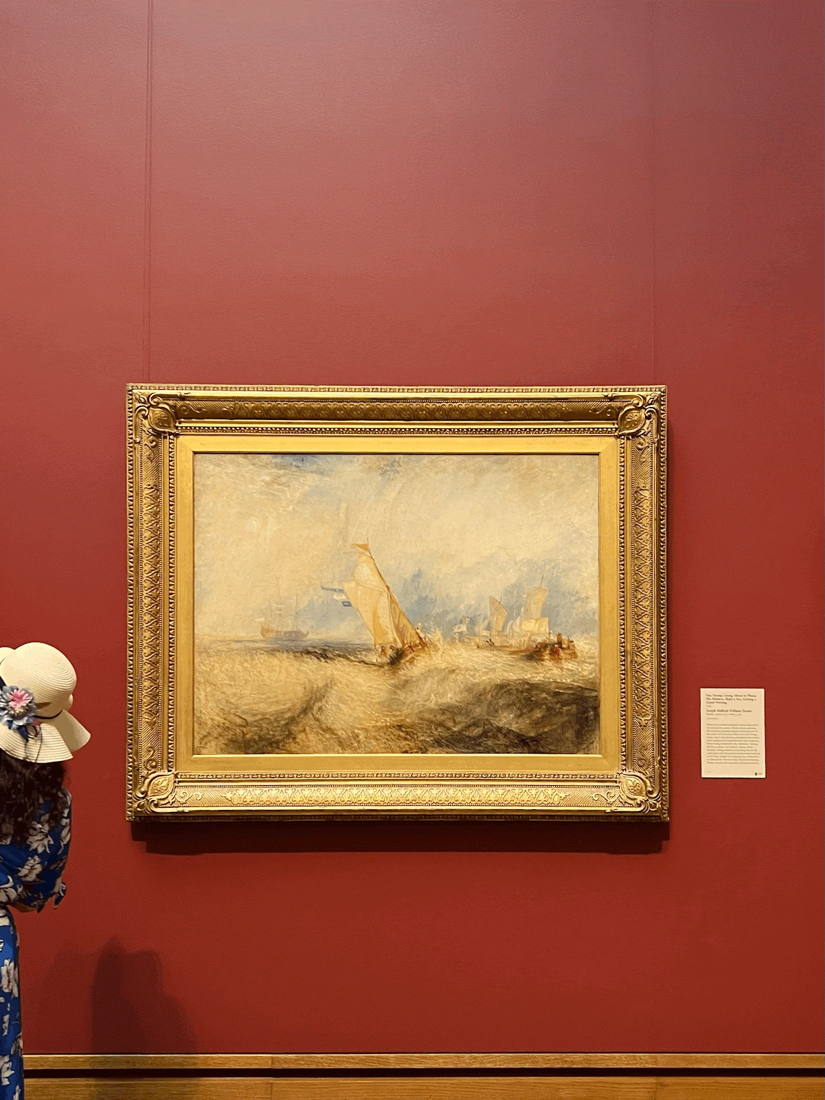 아, 터너는 ‘보다’와 ‘느끼다’ 를 분리한다. ‘아름답게 보이는 게 느끼는 거지’ 라며 보이는 것과 느끼는 건 하나라는 개념이었는데 터너는 ‘보다’와 ‘느끼다’를 달리 보고, 보이는 게 다가 아닌 느끼는 것을 빛으로 표현한다. 이게 터너 그림의 핵심이다. 그 당시 낭만주의의 트렌드 속에서 자연스러운 생각의 흐름이다라고 생각할 수도 있겠지만 처음엔 엄청난 혹평을 받는다. 터너의 작품을 두고 ‘전시회를 불명예스럽게 하는 터무니없는 사치’ 라 평하기도 하고 같은 로열 아카데미의 동료였던 조지 보먼트 경은 그의 작품을 ‘오점들 Blots’ 이라고까지 악평한다. 하지만 터너는 자신의 생각을 밀고 나간다. ‘내가 느낀 것을 빛으로 표현한다.’ 이게 인상주의인데, 이것을 인상주의 트렌드보다 50년 전에 생각하고 있었다고? 천재는 진짜 태어나는 걸까, 만들어지는 걸까? 이런 걸 보면 우리 같은 일반인은 정말 자괴감 마저 든다.