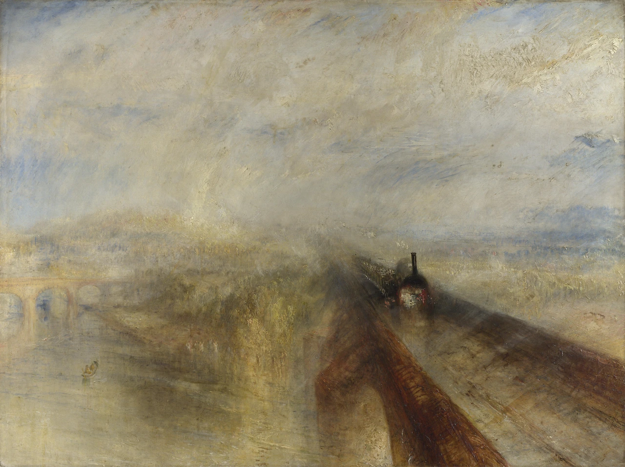 이 작품과 거의 같은 맥락으로 다음 작품도 함께 한 번 보자. 증기기관차가 거칠게 몰아치는 비 사이를 뚫고 그림 밖으로 달려 튀어나올 기세이다. 하마터면 왼쪽으로 몸을 돌려 피할 뻔! 퀵퀵! 휙! 정말 터너, 인정이다.