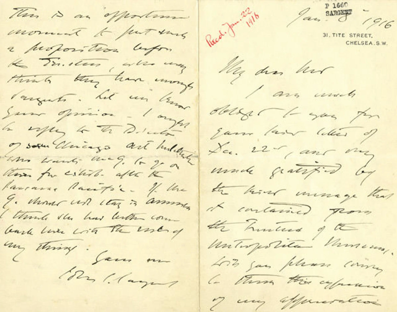 1915년 이 작품의 모델인 마담 고트르가 56세의 나이로 죽고 바로 다음 해인 1916년 1월 8일, 존 싱어 서전트는 1890년대 초에 보스턴 미술관 큐레이터로 함께 일하면서 친구가 된, 그 당시 메트로폴리탄 관장 Director 인 에드워드 로빈슨 Edward Robinson에게 이 작품 ‘마담 X’를 메트로폴리탄에 £1,000 (현재가치로 는 약 $106,000, 약 1억 5천만 원)에 팔겠다고 직접 편지를 보낸다. 그때 이 작품은 전시를 위해 샌프란시스코에 있었고, 미국에 있기 때문에 미술관이 원한다면 그대로 미국에 있는 게 좋겠다고 서전트는 말한다. 그동안 이 작품을 얻기 위해 많은 노력을 했지만 번번이 거절당했던 로빈슨은 깜짝 놀라며 바로 미술관의 구매 위원회 Museum's Committee on Purchases에 편지를 보내 너무나 좋은 기회이고 적당한 가격이니 꼭 구매해야 한다고 어필한다. 서전트의 편지를 받은 지 6일 후 위원회는 최종 구매를 승인한다. 메트로폴리탄에 구매를 제안하는 편지에서 서전트는 다음과 같이 말한다.