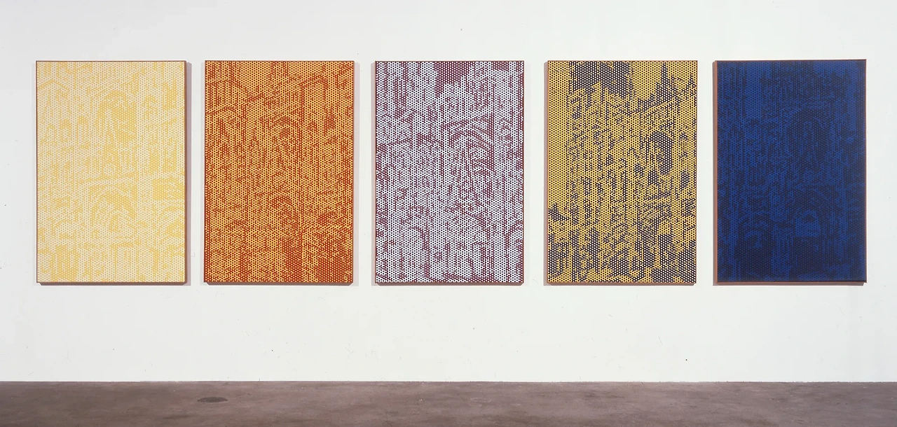 이 작품 너무 좋다. 처음에 딱 봤을 때, 길게 늘어져 있는 철조망 사이로 보이는 풍경쯤으로 보았다. 이렇게 가까이에서 바라보는 풍경도 재미있네,라고 생각했다. 그런데 작품명을 보니 네 그루의 나무들, 나무가 어디 있지? 아, 저 긴 게 나무구나. 하늘 높이 길게 뻗어 있는 나무, 하늘 높이 솟은 나무의 끝이 보이지 않게 그린 것도 재미있고, 풀숲 아래 강가의 물에 비친 모습으로 아래까지 연결해서 그린 것도 재미있다.