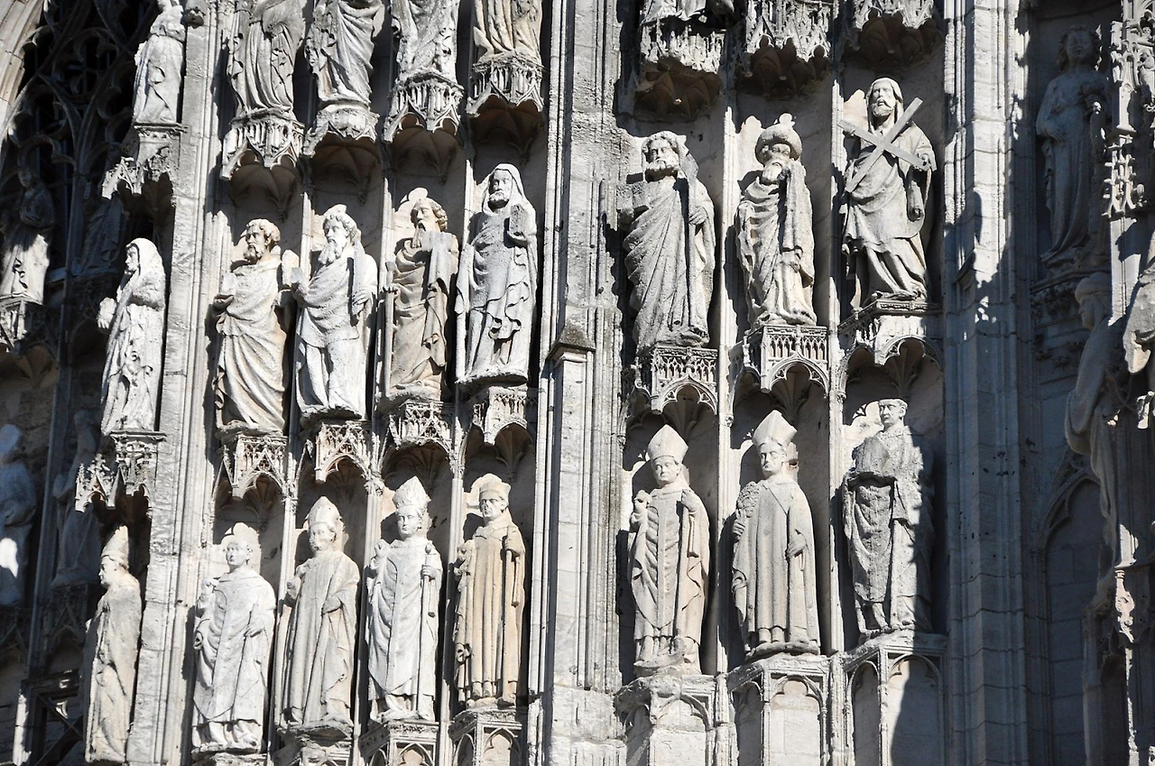 파리에서 차로 약 2시간 거리의 서쪽 노르망디 주의 루앙이라는 도시에 자리 잡고 있는 고딕 양식의 최고봉이라고 일컬어지는 루앙 대성당이다. 서로 다른 스타일의 세 개의 탑으로 구성되어 있는 이 성당은 약 800여 년에 걸쳐 프랑스 종교전쟁과 2차 세계 대전, 번개와 허리케인 등으로 건설과 재건을 반복하여 초기의 고딕 양식과 후기의 르네상스 건축 양식을 함께 가지고 있는 것으로 평가받는다. 처음에는 그 크기와 웅장함에 압도당하고 나중에는 성인 한 명 한 명을 빼곡히 새겨 넣은 벽면의 디테일에 또 한 번 놀란다.