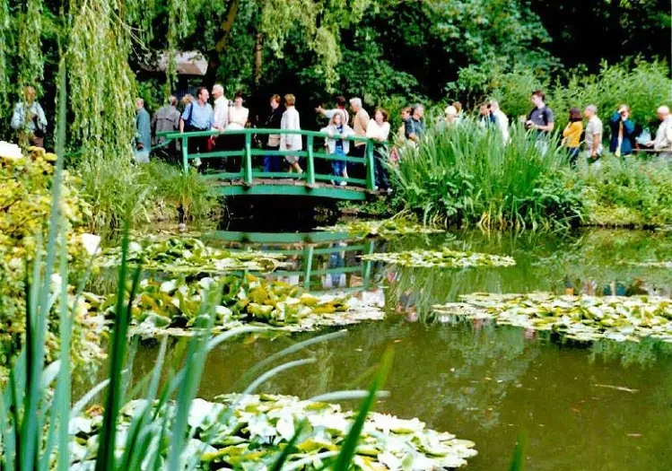 1893년 모네의 집에서 철도 선로 건너편에 있는 작은 땅을 추가로 구매하여 가든을 확장한다. 그 해 말 일본식 정원에서 많이 보이던 가든을 서로 연결하는 구름다리 형태의 인도교를 설치한다. 그리고 이 다리가 포함되어 있는 그림을 1895년에 세 점 그리고, 1899-1900년 사이에 18개의 연못 위의 다리가 있는 수련을 그린다. 물 위에 떠 있는 수련들 위에 과감히 그림의 정 중앙을 가로지르는 아치형 다리를 얹으면서 모네의 수련 그림은 왕관을 씌워준 느낌이다. 모네는 이렇게 너무나 사랑하는 지베르니 가든에 자신의 마음처럼 왕관을 씌워준다.