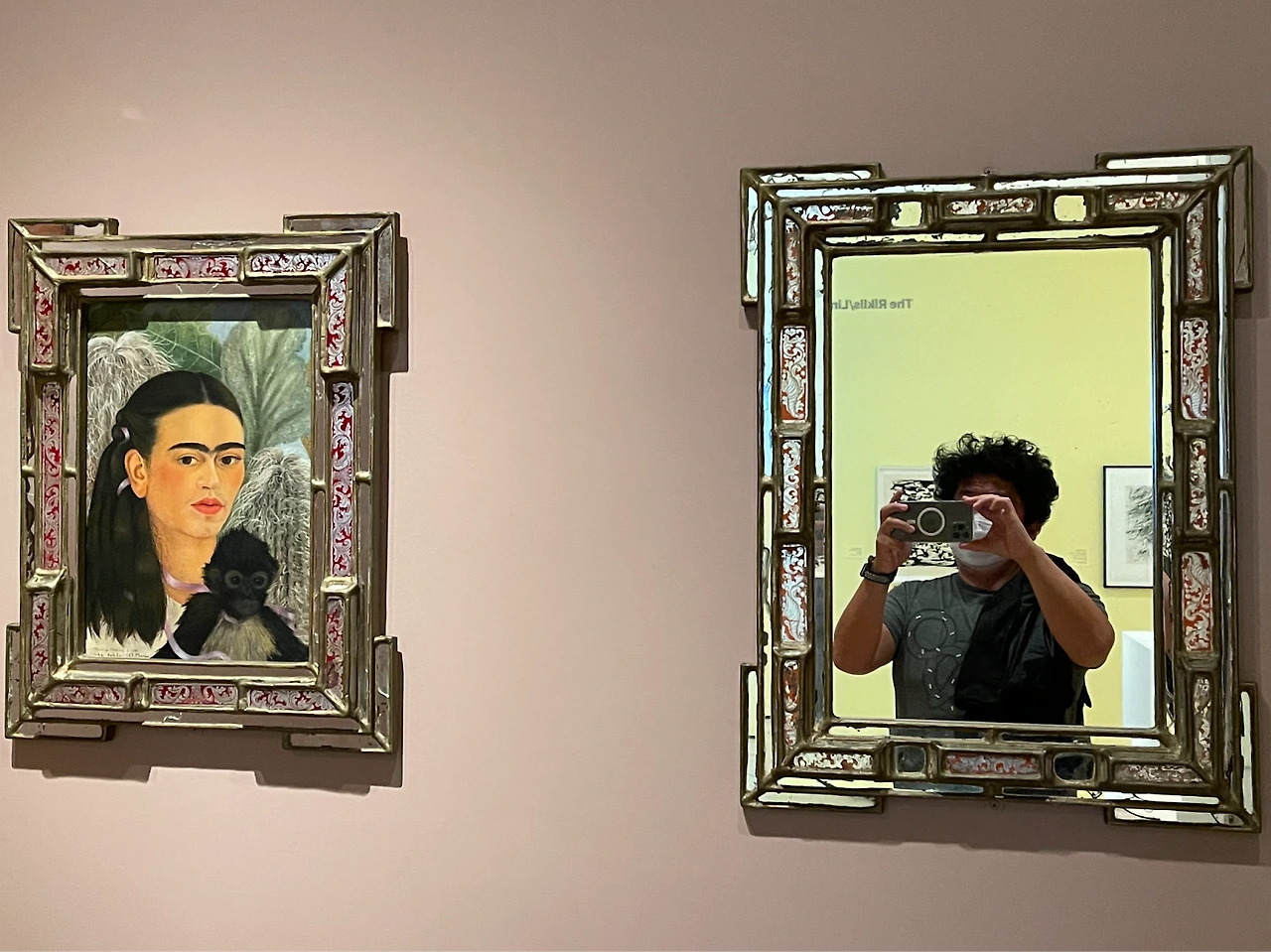 실제 거울을 작품에 넣어, 작품 속 주인공과 관람자의 모습이 하나의 작품으로 표현되게 만든 프리다 칼로의 플랑-창과 나 Fulang-Chang and I, 1937, 프리다 칼로 Frida Kahlo, 뉴욕 현대 미술관 MoMA