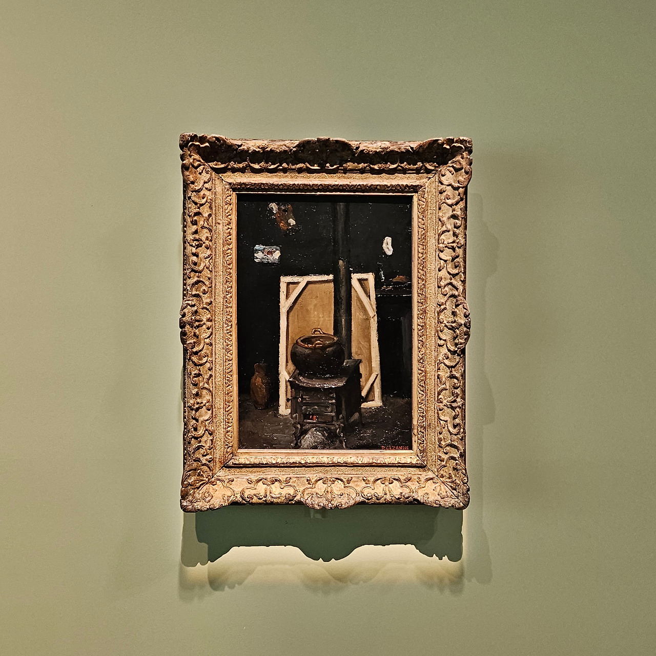 세잔이 그린 <작업실의 난로>는 그의 초년작이자 작업실의 분위기를 나타낸 그림이다. 깜깜하고 무념(無念)에 가까운 공간을 나타내기 위해 검은색으로 배경을 칠했다.