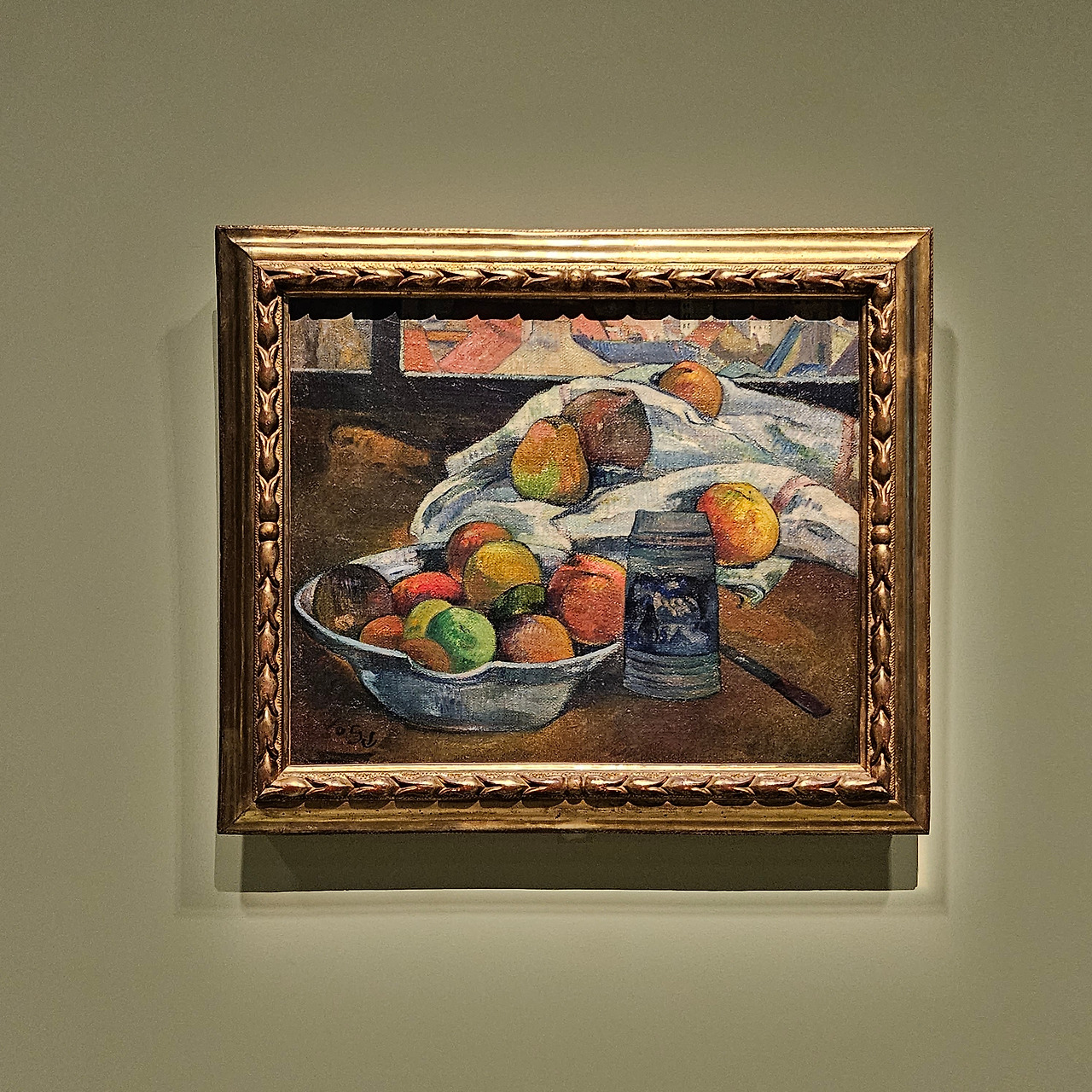 구도와 구상 등 세잔과 작품을 상당히 차용한 것을 알 수 있다. 세잔과 차이점이 있다면 창문 넘어 도시를 배경을 넣었다는 것이다. 그림에 접근하는 방식을 세잔으로부터 시작한 점이 참 독특하면서 당시 세잔의 위치를 알 수 있는 그림이다. 우리가 흔히 아는 폴 고갱의 작품이 아니라 다소 낯설기도 하지만 반대로 폴 고갱이 그림을 시작하는 시기를 알 수 있어 좋다.