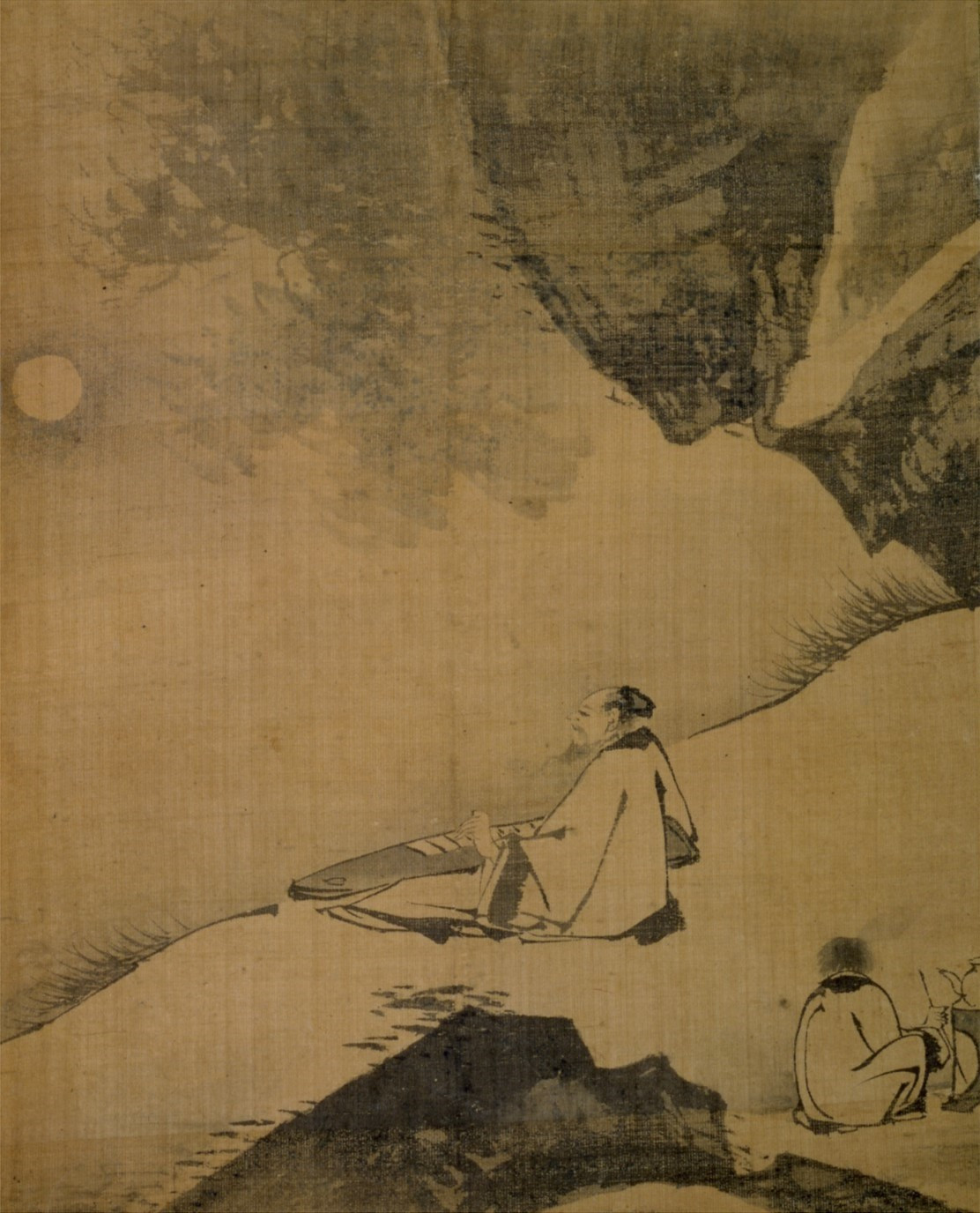 흑백의 명암으로 처리한 부벽준(斧劈皴)은 절파(浙派)의 양식을 적절히 활용된 것이다. 그렇기에 거문고를 고사(高士)를 집중시켜주면서 자연스레 시선을 달로 향하게 한다. 먹의 농담으로 물아일체(物我一體)를 나타내었다.
