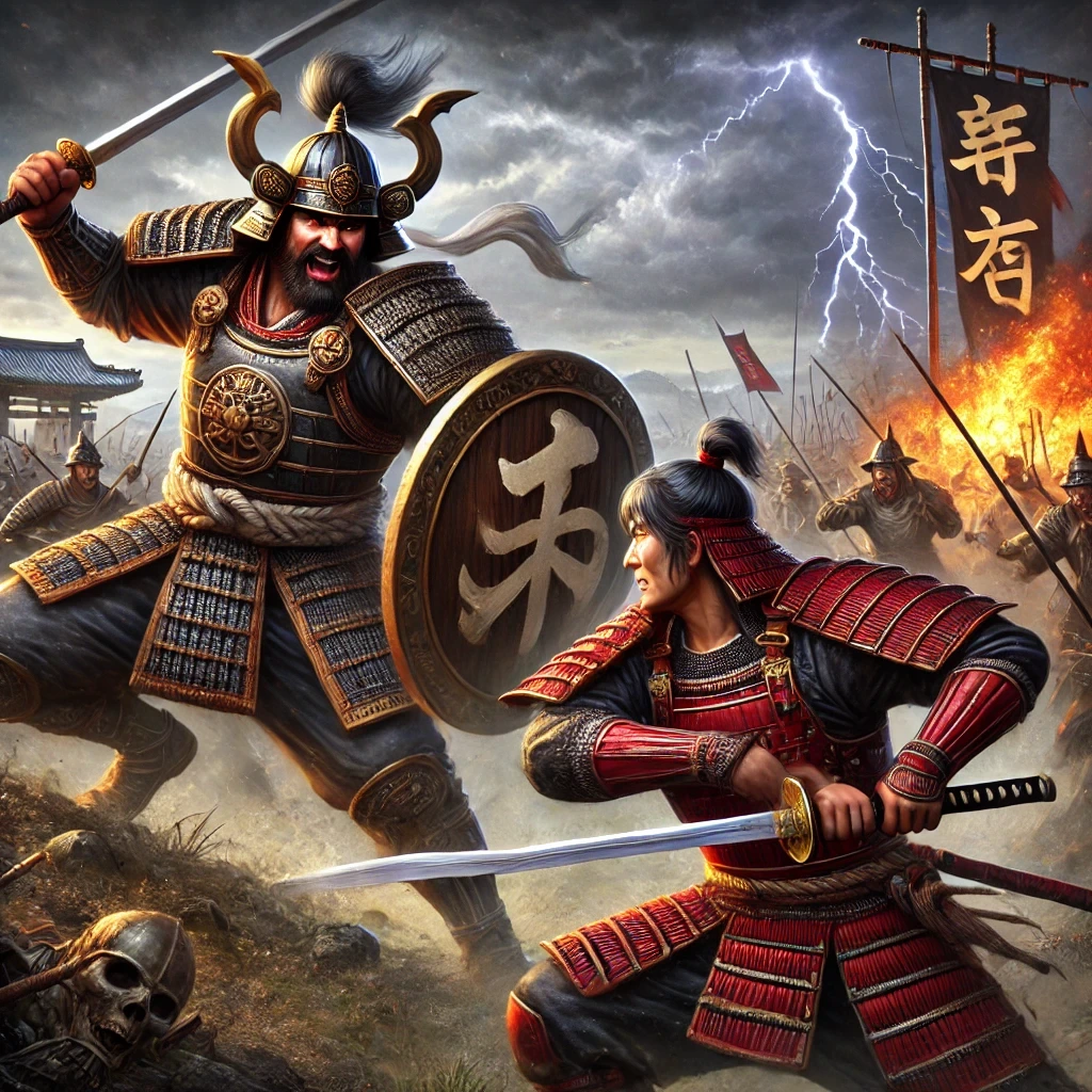 그의 검이 빛나며, 악마 쇼군의 시간을 되돌려버렸다.