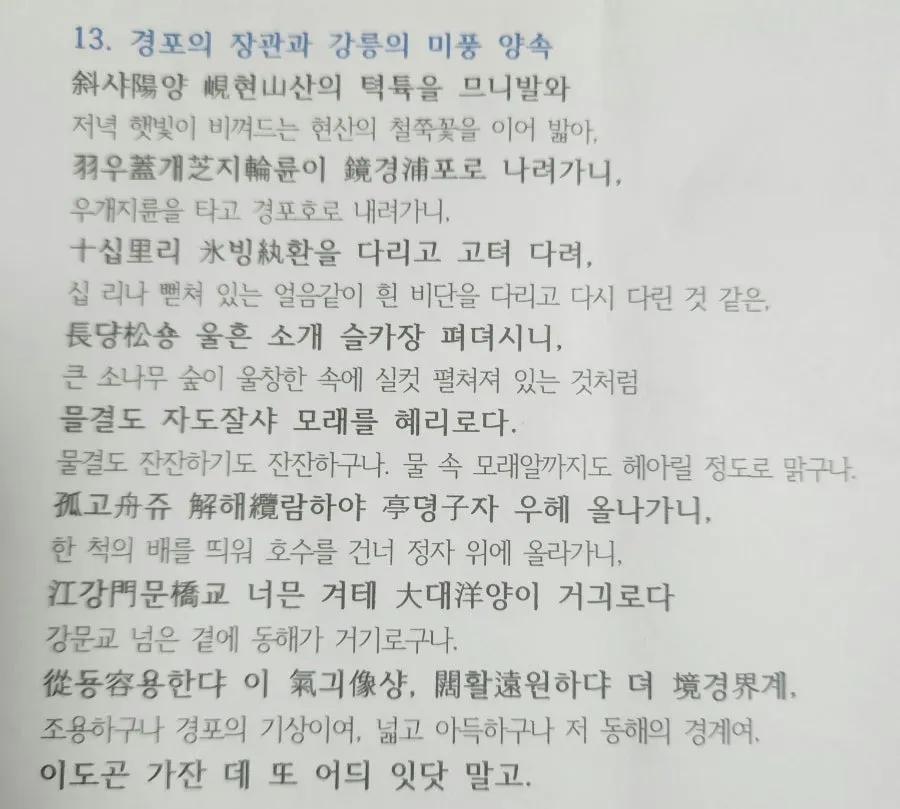 13. 경포의 장관과 강릉의 미풍양속