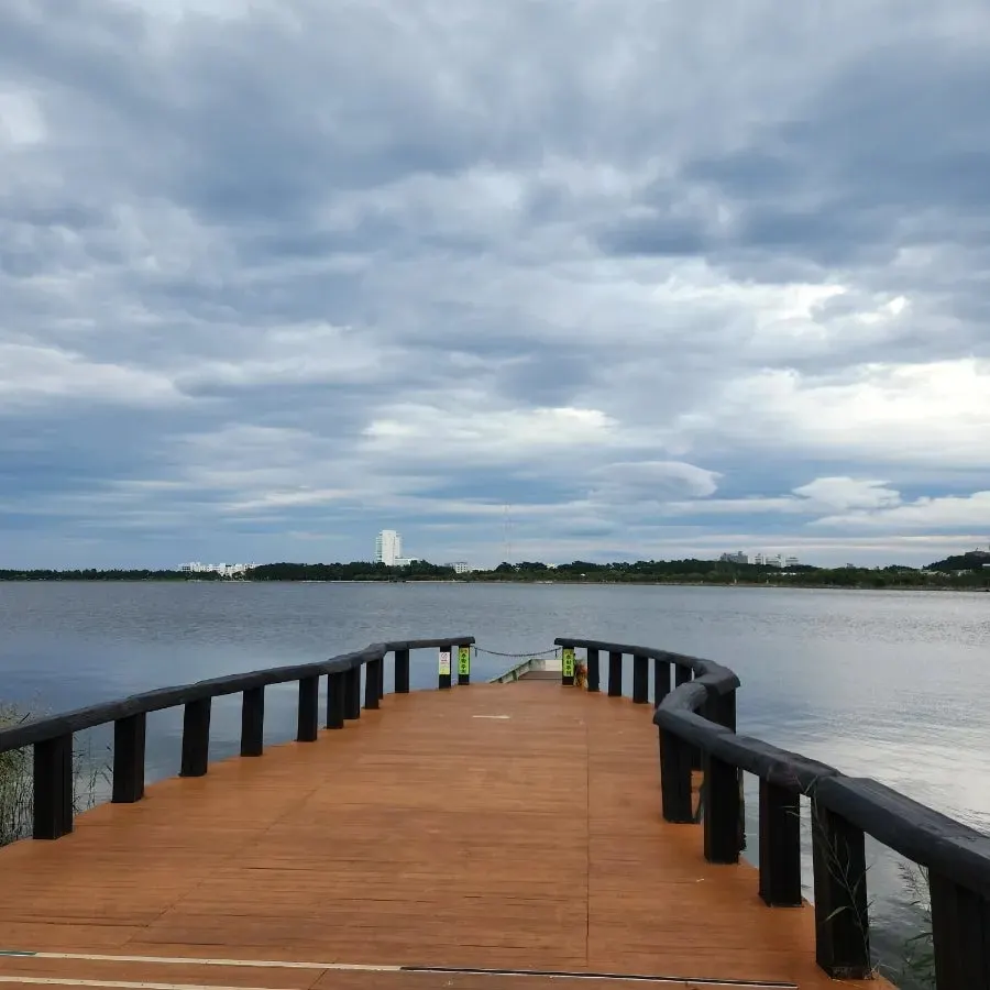 저 멀리 강릉 스카이베이가 보인다. 경포대 위에 서서 멋진 모습 보고팠으나 공사관계로 경포호에서 바라본다. 경포대에선 경포호수와 동해바다의 전망을 한눈에 볼 수 있겠다.