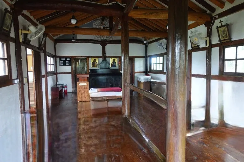 성당 내부 모습은 십자가를 통해 빛이 들어온다.
