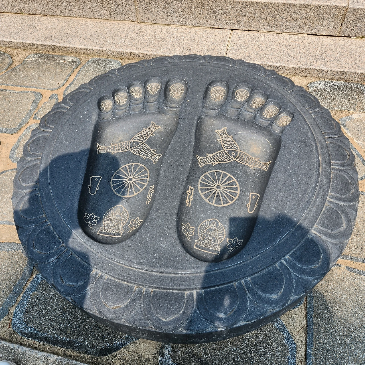 적조전 앞에 부처님의 발자국을 새긴 연꽃 모양의 돌받침이 놓여 있다. 색다르다.