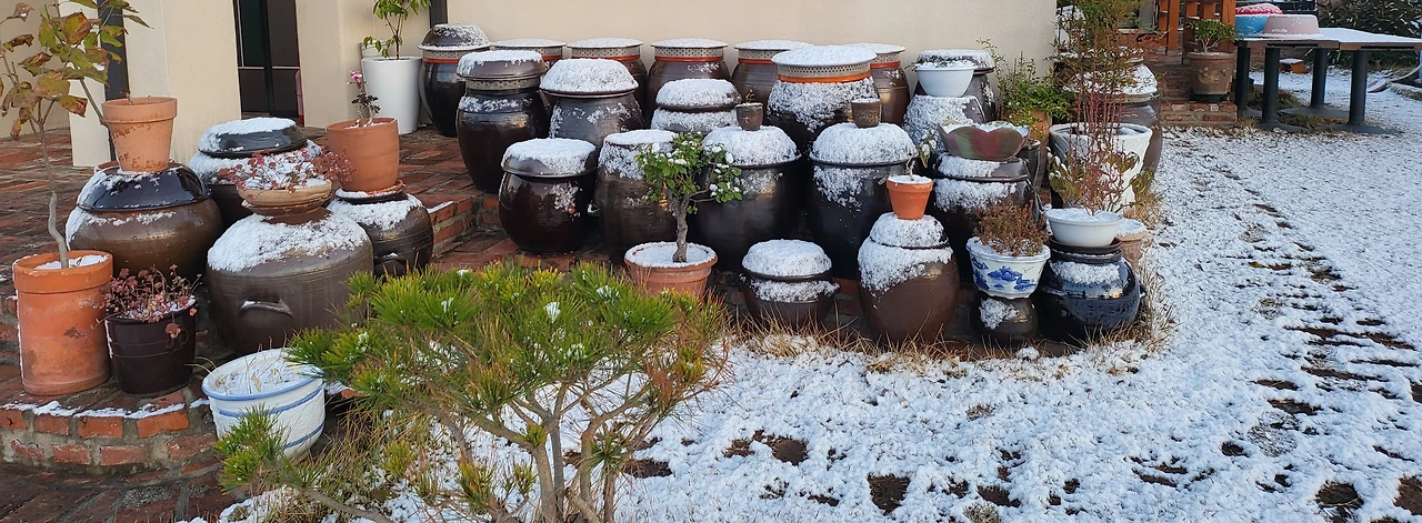 장독대의 표정 속에 어떤 미소가 담겼을까. 웃기는 할까. 그것마저 궁금하다. 커피 향기에 녹아나는 묘한 설렘이 눈 속에 피어 신비로움을 자아낸다.