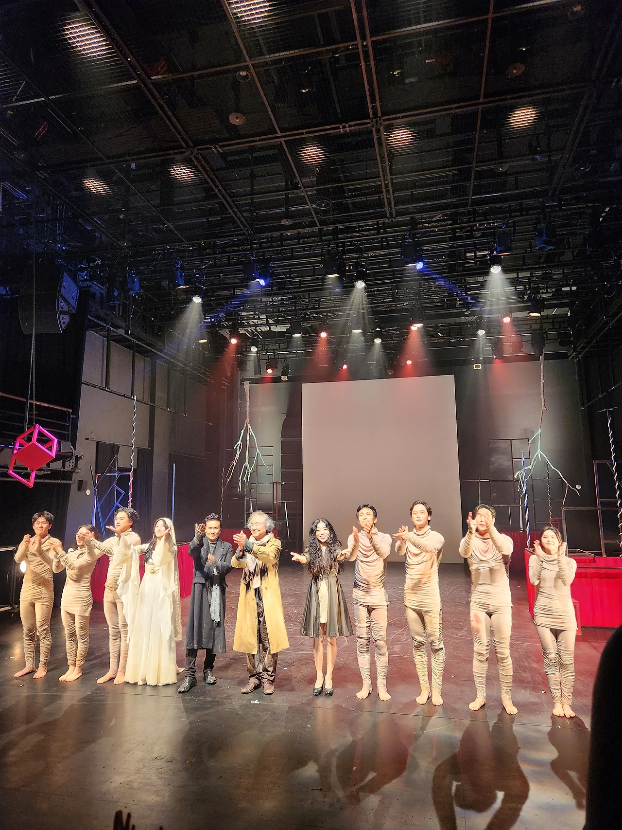 낮고 우아하고 부드럽고 청아한 목소리로 단테를 천국으로 이끄는 사랑의 베아트리체. 같이 연극을 관람하던 옆 친구는 베아트리체의 미모에 반했고 나는 그녀의 낮고 묵직한 울림에 반해 그녀의 손짓을 따라 하고 있었다. 성모 마리아의 온유한 목소리와 부드러운 몸짓으로 모두를 끌어안고 있었다.