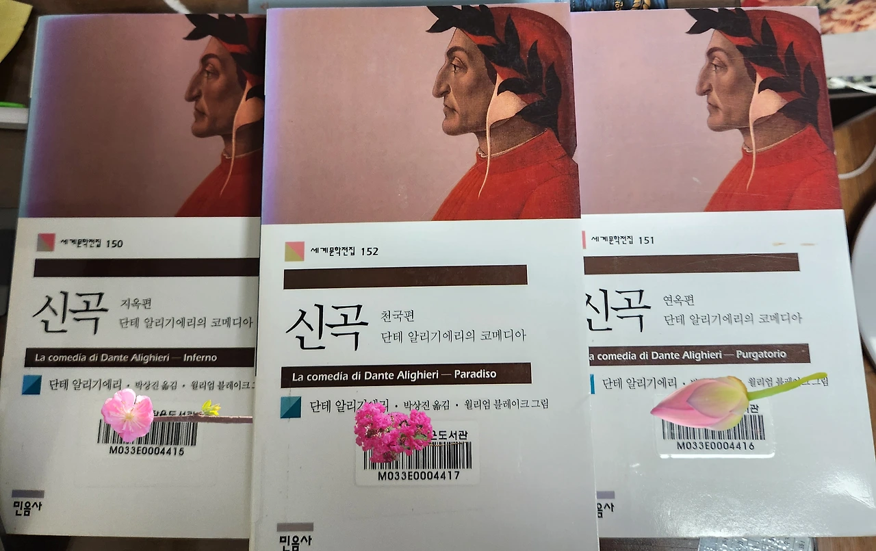 사실 번역자의 역할도 무시할 순 없어서 세 출판사를 비교해 보고 골랐다.ㅡ(읽는 도중 카톨릭 출판의 책을 읽었는데 번역이 더 매끄러움을 느꼈다.) 그런데 지옥편의 1곡을 읽는 순간 처음부터 무슨 얘기를 하고 있는지 상황을 가늠하기가 어려웠다. 그래서 다시 오래된 삼성출판사 책을 펼치며 주석부터 읽어나갔다. 단테가 베르길리우스를 만나는 상황을 이해하고 나서야 제대로 길을 잡고 다음 곡을 드나들 수 있었다.
