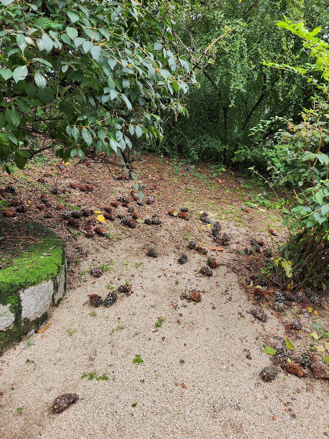 잣송이는 찌그려져 있다