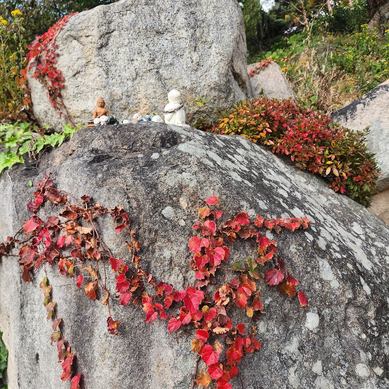 ㅡㅡ인근의 사찰을 방문했습니다. 가을이 짙어가는데 아직은 푸른 녹음이 흩날립니다. 단정히 차려 입은 붉은 치마 사이로 부처님은 오늘도 홀연히 법당 앞을 지키고 계십니다. 그 평안함을 이어가도록 땅끝부터 하늘 끝까지 고개 숙여 봅니다.