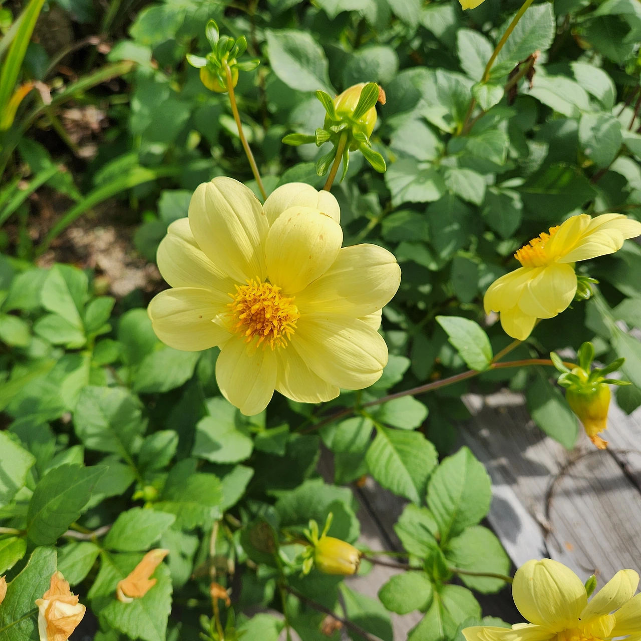 노란 다알리아가 웃고 있다