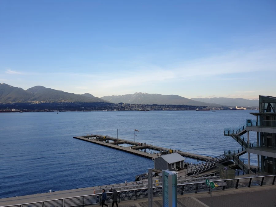 개스타운으로 가는 길에 잠깐 캐나다 플레이스에 들렀다. 당시 내가 얼마나 밴쿠버에 무지했냐면 캐나다 플레이스도 뭔지 몰랐다. 캐나다 플레이스는 세계 유명 크루즈들이 정박하는 장소로 날씨가 좋으면 파란 하늘과 파란 바다 그리고 바다 건너편의 노스밴쿠버를 한눈에 볼 수 있는 장소다. 당시 미국에서 난 산불로 인해 대기질이 좋지 않았지만 그럼에도 탁 트인 경관은 속 시원한 기분을 느끼게 만들어주었다.