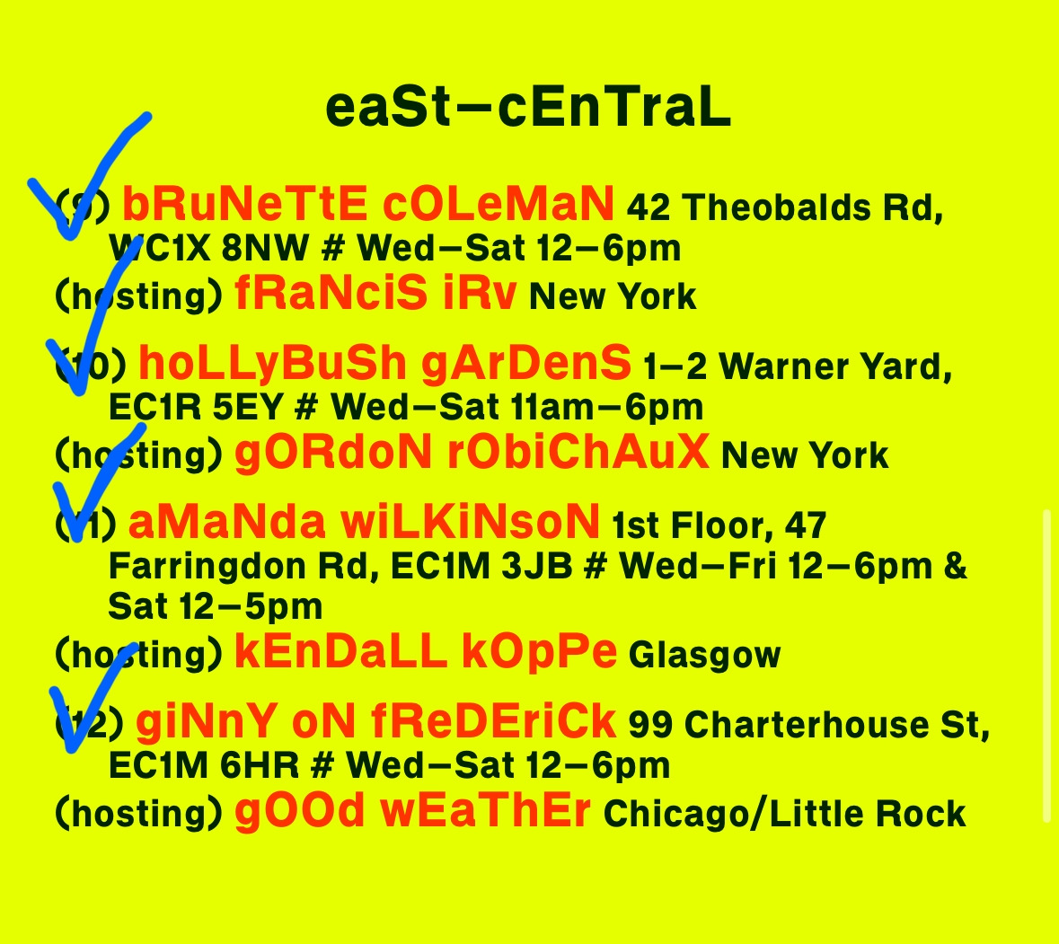 이번 전시에 공간을 내어준 런던의 장소들은 놀라울 정도로 찾기가 어려웠다. 그만큼 웬만한 대안공간까지 다 들어찰 만큼 예술가들을 포화수용하고 있다는 뜻일까. 분명히 맞는 주소로 찾아갔는데 간판조차 없거나 벨을 누르고 낡은 건물의 계단을 몇 층이나 올라야 겨우 만날 수 있는 경우가 대부분이었다. 이렇게 전시를 보기 위한 진입장벽이 높은데도 전시장에 발을 들여놓고 나면 다른 관람객을 만나는 일이 많아 기꺼이 전시를 위해 찾아올 만큼 사람들의 관심이 많다는 것 또한 놀랍다.