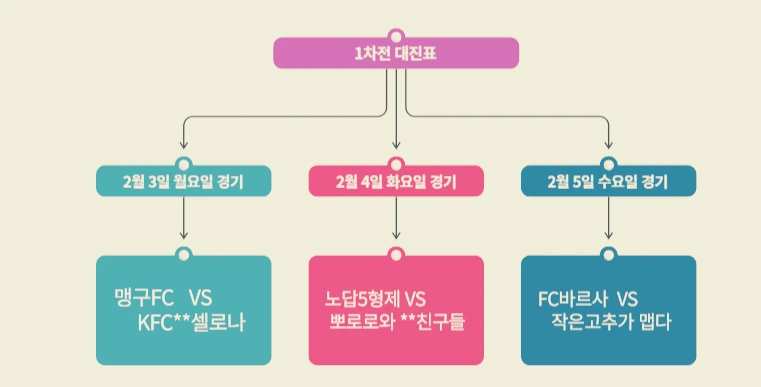 신청 마감은 1월 24일 금요일이었다. 총 6팀이 참가신청서를 제출했다. 옆반 아이들이 선생님팀 맹구 FC라며 노래를 개사해서 놀렸다. 그래서 6학년 2반 선생님한테 신고한다고 으름장을 놓았다. 벌써 신경전이 대단하다. 아이들이 운동장에 나가 축구 연습을 하고 난리였다. 우리 팀 주장 MS이는 선생님 축구화 걱정부터 했다. 내가 발 사이즈 235라고 하자 자기 축구화 집에 여유분 있다며 1개 가져온다고 했다. 급식을 먹으러 가기 전 화장실에서 손을 씻고 복도를 지나가는데 맹구 FC의 DH(4학년)이를 만났다. 날 보며 씩 웃더니 인사말을 던졌다.