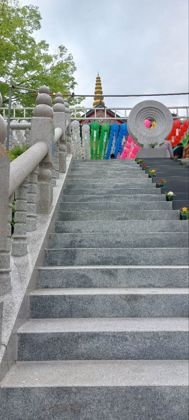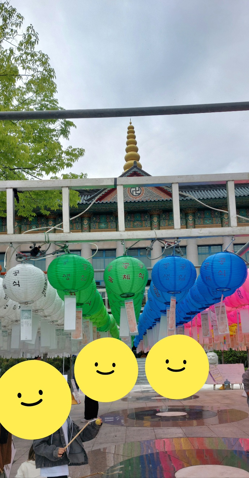 5월 5일 어린이날이었지만, 우리 집 어린이는 부모와의 외출을 거부하였고, 남편과 나는 황매산 등반을 마치고 집 근처 절로 갔다. 남편이 등을 달아놓은 절에 가서 부처님께 절도하고 점심도 배불리 먹었다. 차를 돌려 나오는 인근에 어마어마한 절이 보였다. 여기는 큰어머니가 다니시는 절인데 옛날에 젊을 때 한번 따라가 본 기억이 있다. 남편은 궁금하다며 저기도 가보자고 했다. 벌써 배도 부르고 집에 가서 낮잠이나 자고 싶었던 나는 내키지 않았지만 따라나섰다. 계단을 올라가는데 진짜 큰어머니를 만났다. 큰어머니는 절의 행사 진행을 돕고 계셨다. 절을 다하고 집에 가려고 했는데 저기에 팔찌 만들기도 하고 불경 필사도 한다며 놀다 가라고 하셨다. 음, 그래 아이들을 위해 팔찌나 하나 만들어 볼까? 다 만들고 나니 옆 테이블에 붓펜으로 글씨를 따라 적고 있는 사람들이 보였다. 부처님 좋은 말씀이나 따라 써볼까 하고 시도했는데 팔 빠지는 줄 알았다. 남편은 나보다 짧은 글을 택해서 금방 끝났다.