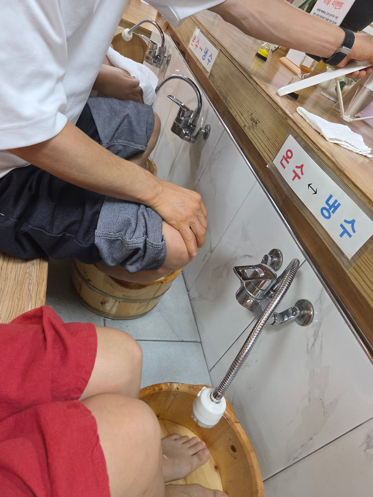 14일 아침, 우리는 7시 조금 넘어서 일어났다. 그날 아파트 가스 검침이 있는 날이었는데 검침원 아주머니께 조금 일찍 와달라 부탁을 드렸더니 7시 30분에 오셨다. 가스 검침을 마치고 짐을 챙겨 우리는 출발하지 못했다. 왜냐면 전날 남편이 허리를 삐끗한 것이었다. 쓸데없이 진짜 내 기준에 쓸데없이 가게에 있는 큰 화분을 움직이다가 화분은 다 깨고, 허리는 다치고 진짜 말이 곱게 안 나왔다. 남편이 대기 1번으로 한의원에 간 사이 우리는 차에서 대기했다. 30분이 넘으니 슬슬 초조했다. 항상 약속 장소에 10분 일찍 도착해야 하고, 계획대로 일이 진행되지 않으면 나는 극도로 스트레스를 받는다. 그리고 중요한 건 배 시간이 2시 30분이라서 오전에 나폴리 농원에 맨발체험을 신청해 둔 상태였다. 10시 30분 입장은 물 건너갔고, 45분이 넘어가니 더 이상 기다리지 못하고 남편에게 전화를 걸었다. 마지막 물리치료, 5분만 더하면 된다고 했지만, 그냥 나오라고 했다. 9시 50분, 운전대는 내가 잡았고 우리는 11시 무렵 나폴리 농원에 도착했다. 생각보다 규모도 크고 맨발 걷기 체험도 재미있었다. 마지막 코스는 족욕이었는데 폰으로 딴짓하다 물양을 지키지 못해서 여사장님의 눈총을 받아야 했다.