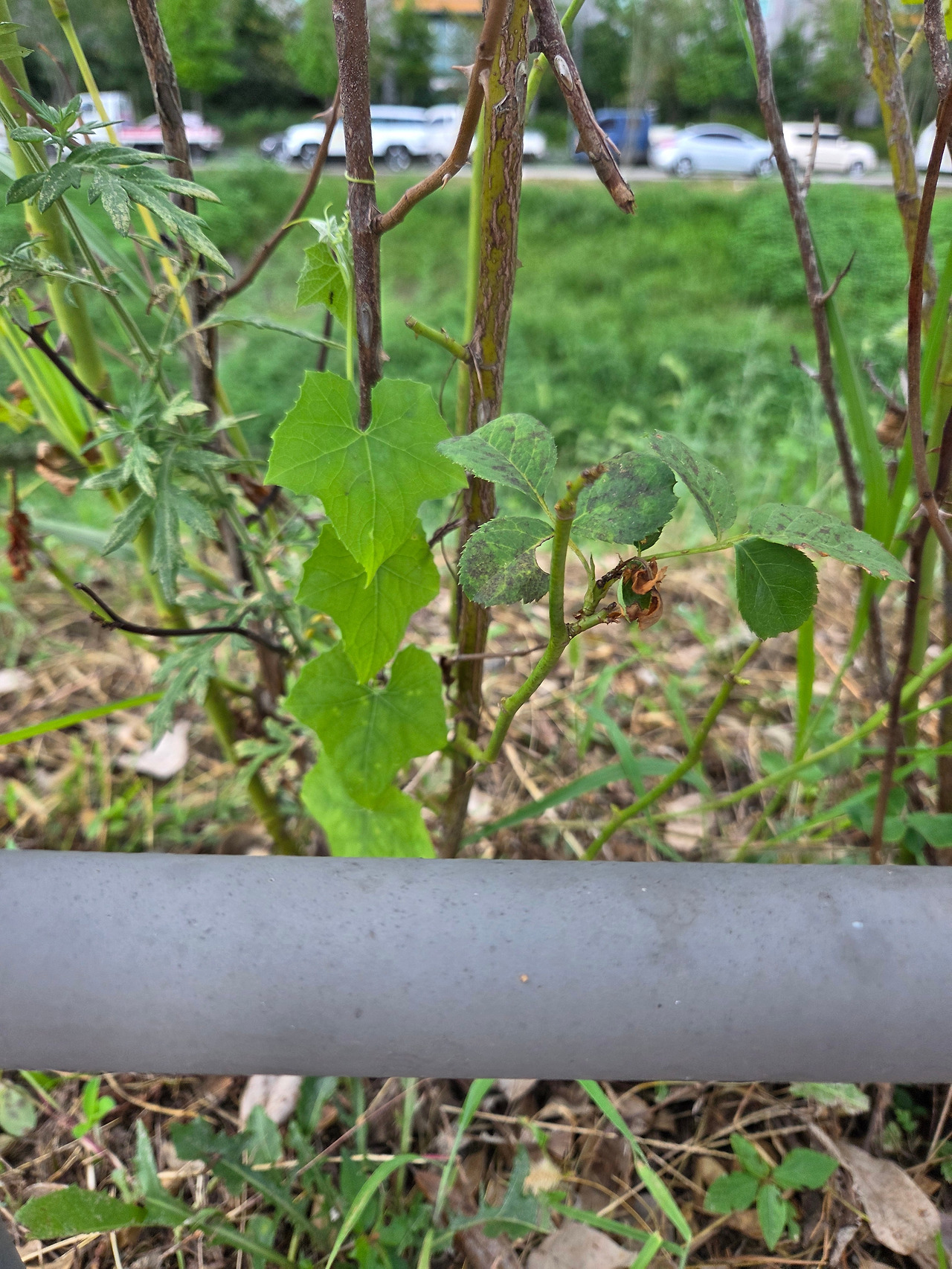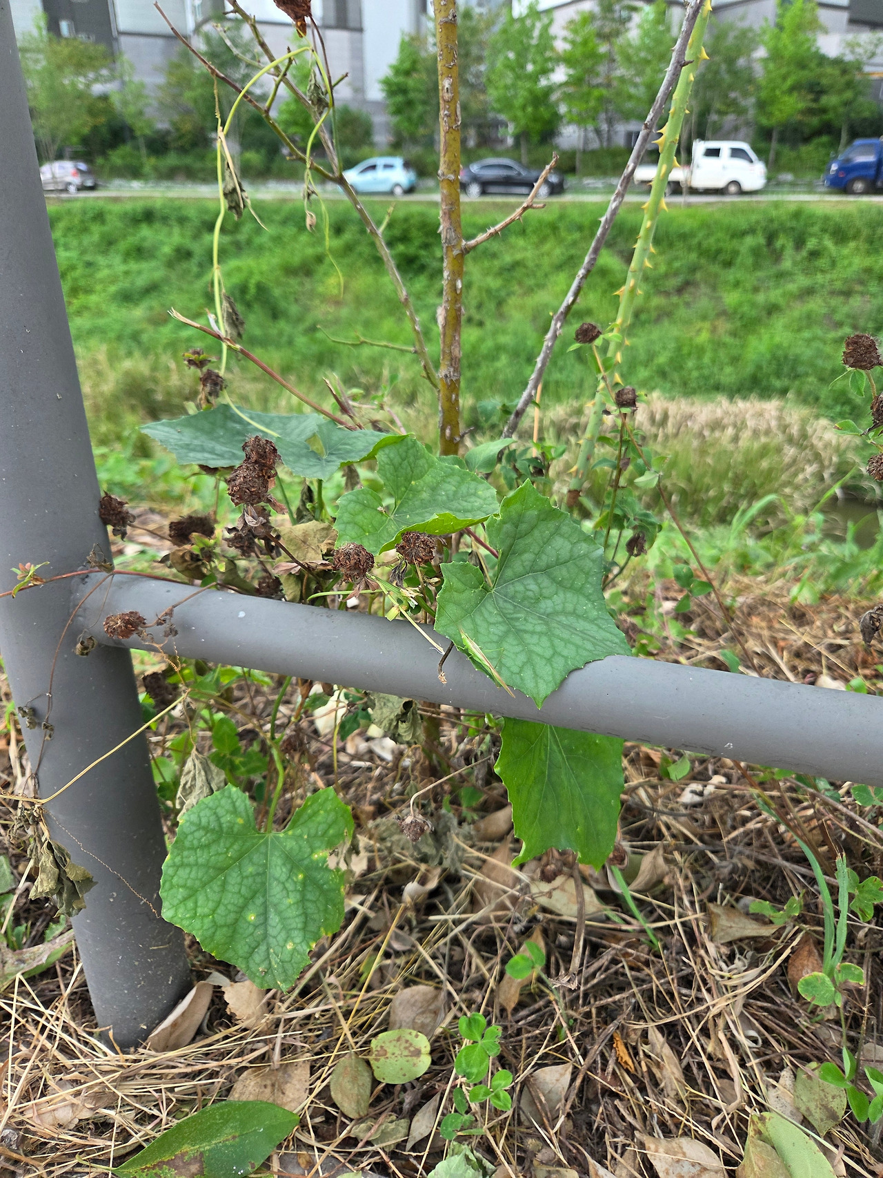 3월 말, 비가 조금 내리는 저녁이었다. 우산을 쓰고 나는 집을 나섰다. 아파트를 나와 산책길로 들어섰다. 다행히 비가 와서 그런지 사람이 거의 없었다. 나는 눈치를 살살 보며 수세미 씨를 던졌다. 나름 나는 머리를 써서 수세미가 감고 올라갈 지지대가 있는 곳을 골라서 씨를 뿌렸다. 간이 작아서 씨를 반쯤 정도 남겼다. 그리고 며칠 후에 이 짓을 똑같이 반복했다. 기대는 크게 하지 않았다. 뭐 올라오면 올라오는 거고, 죽으면 죽는 거고.